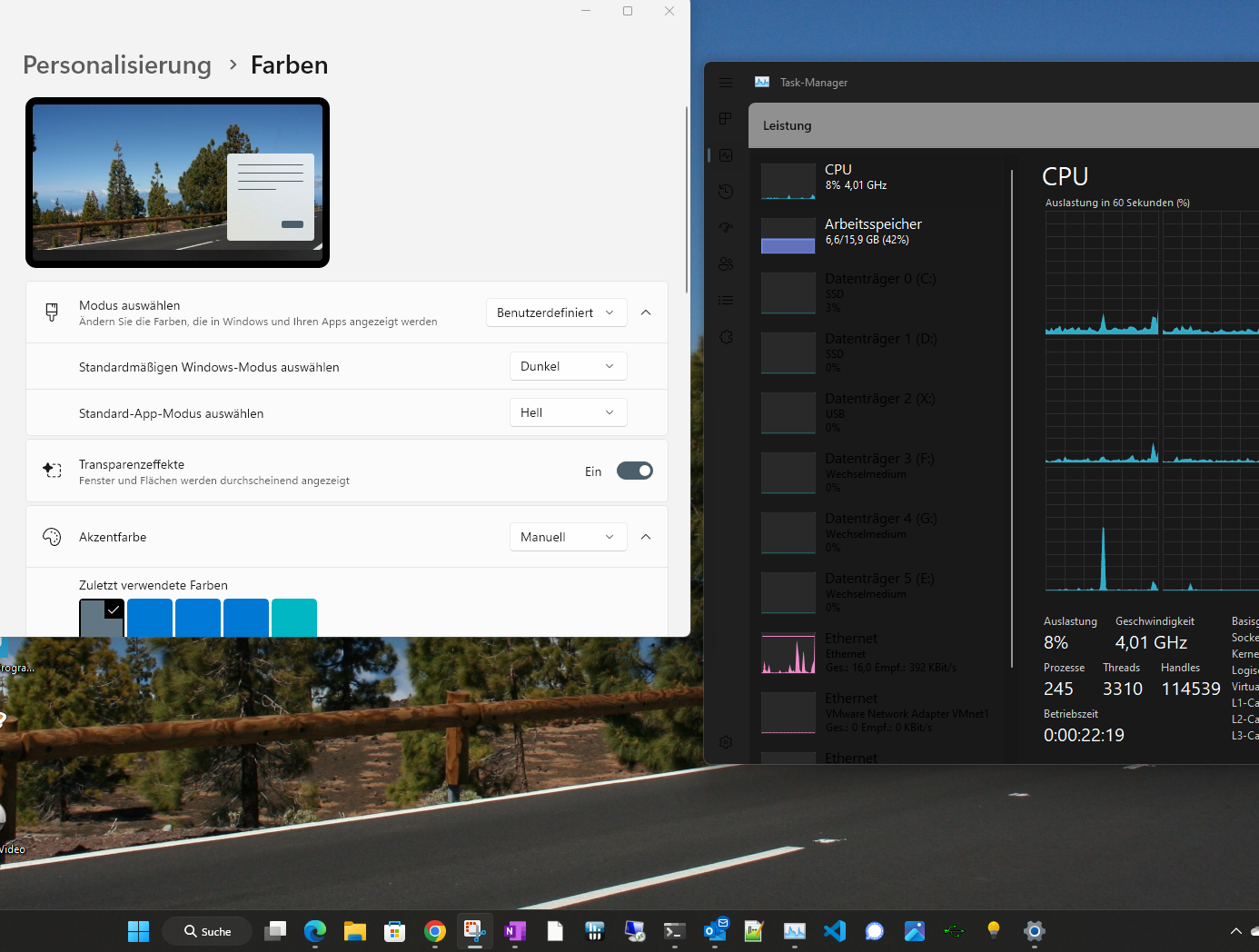 Der Taskmanager ist "halb" im Dark Mode, aber teilweise mit schwarzen Schriften - also komplett unbrauchbar.