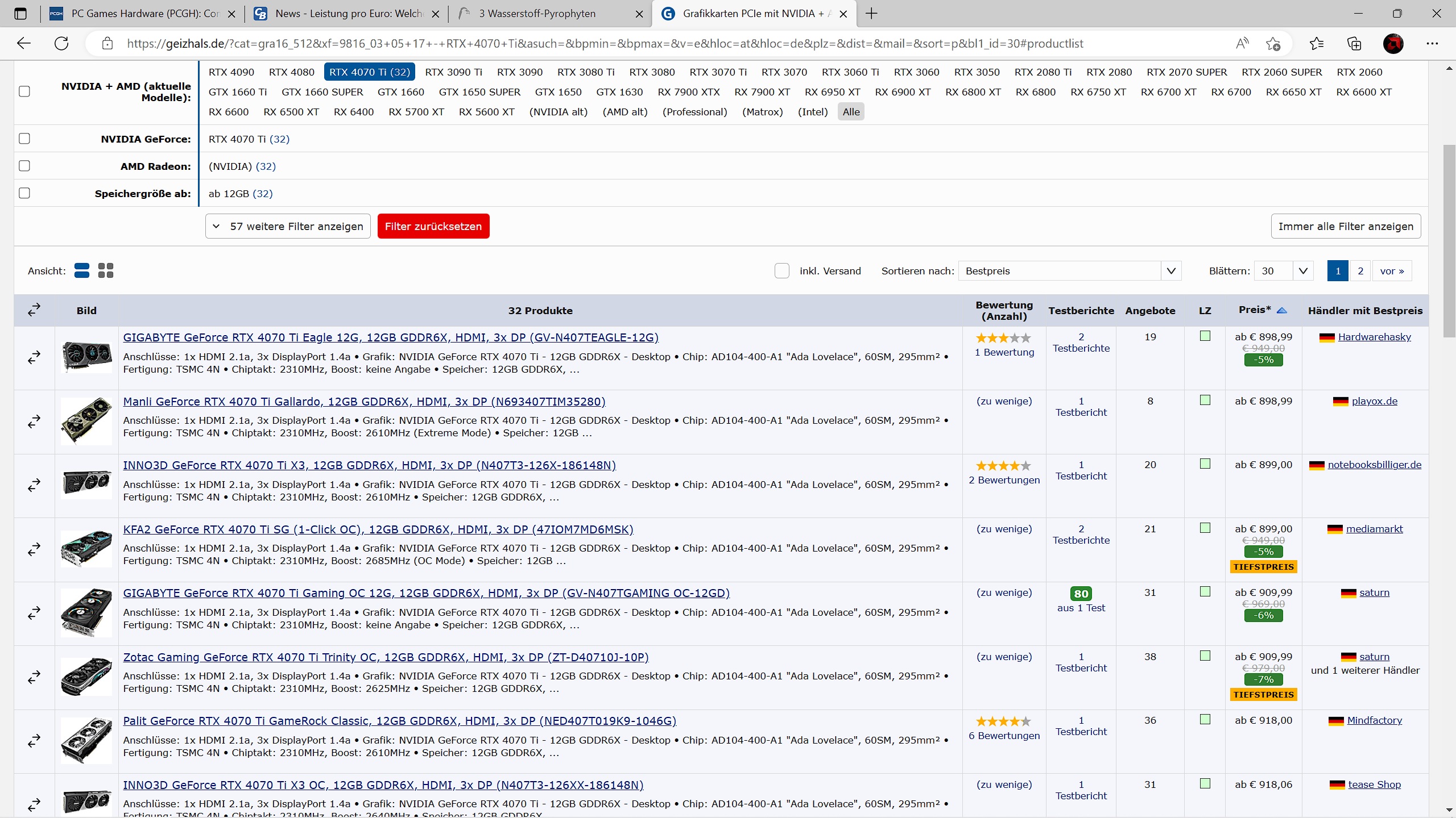 Guck mal hier:Onkel Föhn schrieb:Die 4070Ti (12 GB) finde ich just erst ab 900 €.