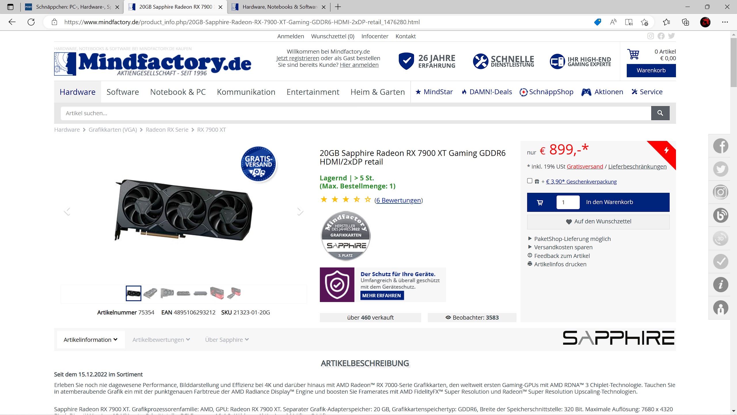 Die 7900XT (20 GB) "FE" gab es schon mal für 899 €.