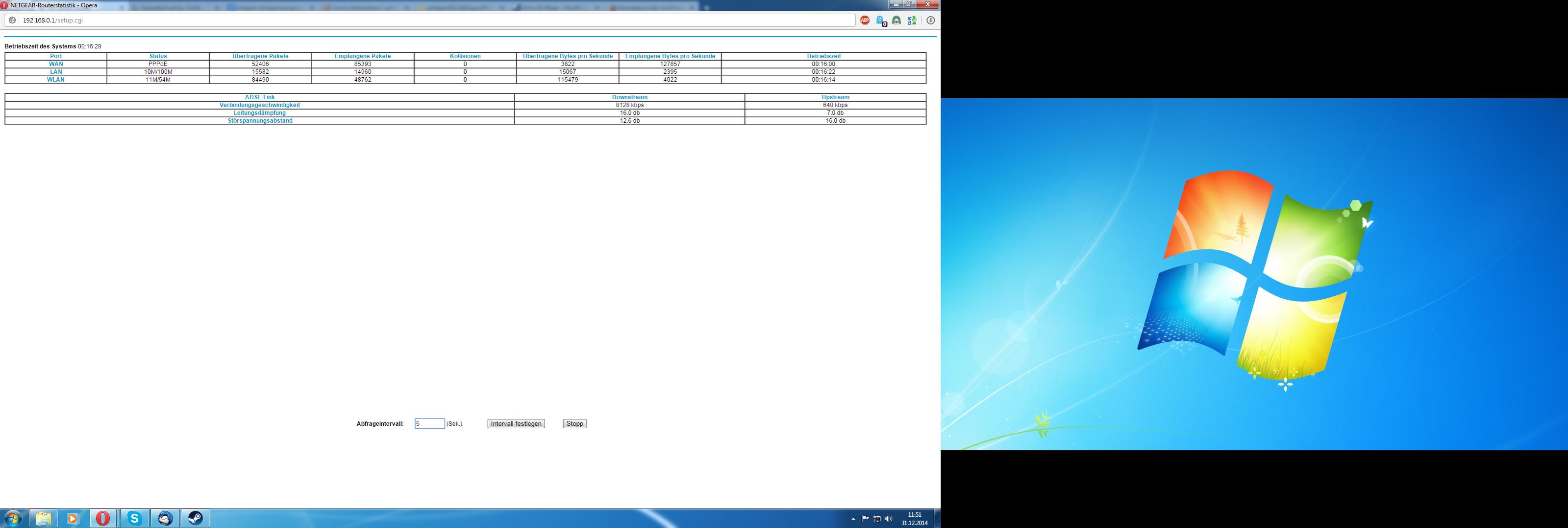 Laut Modem Netgear dg834g v4 sollte ich einen Downstream von 8128 kbps bzw Upstream 640 kbps haben.