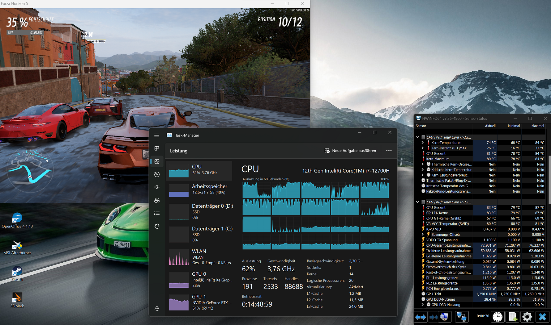 Vorhin beim Spielen wurden die Lüfter richtig laut und die CPU war kurzzeitig auf 90% Auslastung.