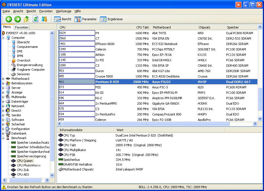- Pentium D 820 (2.8 GHz)