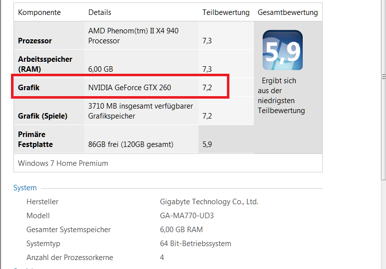Also mein Win7 Prof. 64 bit System lässt sich nicht dazu bewegen seinen eigenen Leistungsindex durchzuführen. Das Fenster lässt sich ganz normal öffnen, doch beim klick auf System bewerten tut sich nichts ( Pfeil wird nicht zum Finger ).