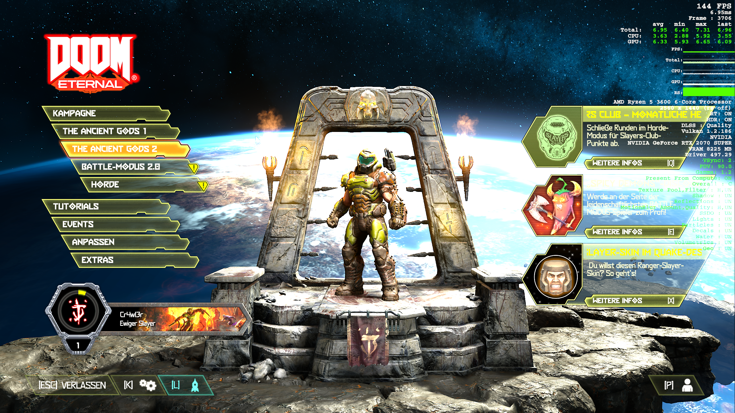 Ich hänge mal ein Bild von Doom mit an damit ihr wisst was ich meine. Dort ist die Anzeige rechts oben. Bei Half-Life zum Beispiel ist sie rechts unten aufgeführt.
