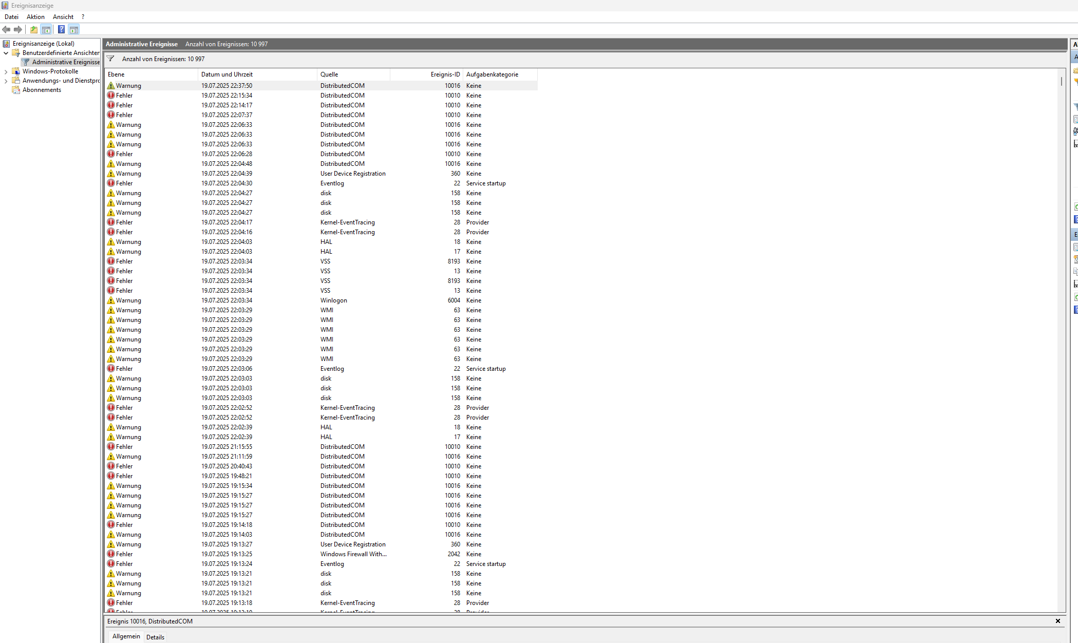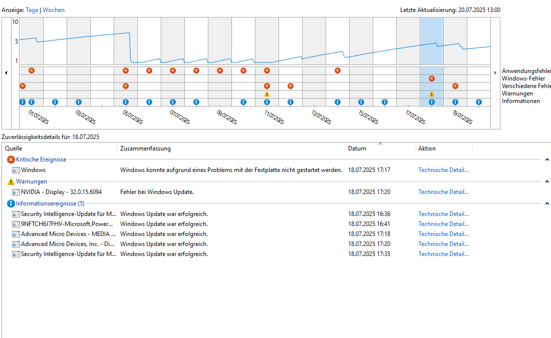 Anbei findet ihr einen Screenshot vom Ereignismanager. Die HAL 18 & 17 einträge machen mir etwas sorgen.