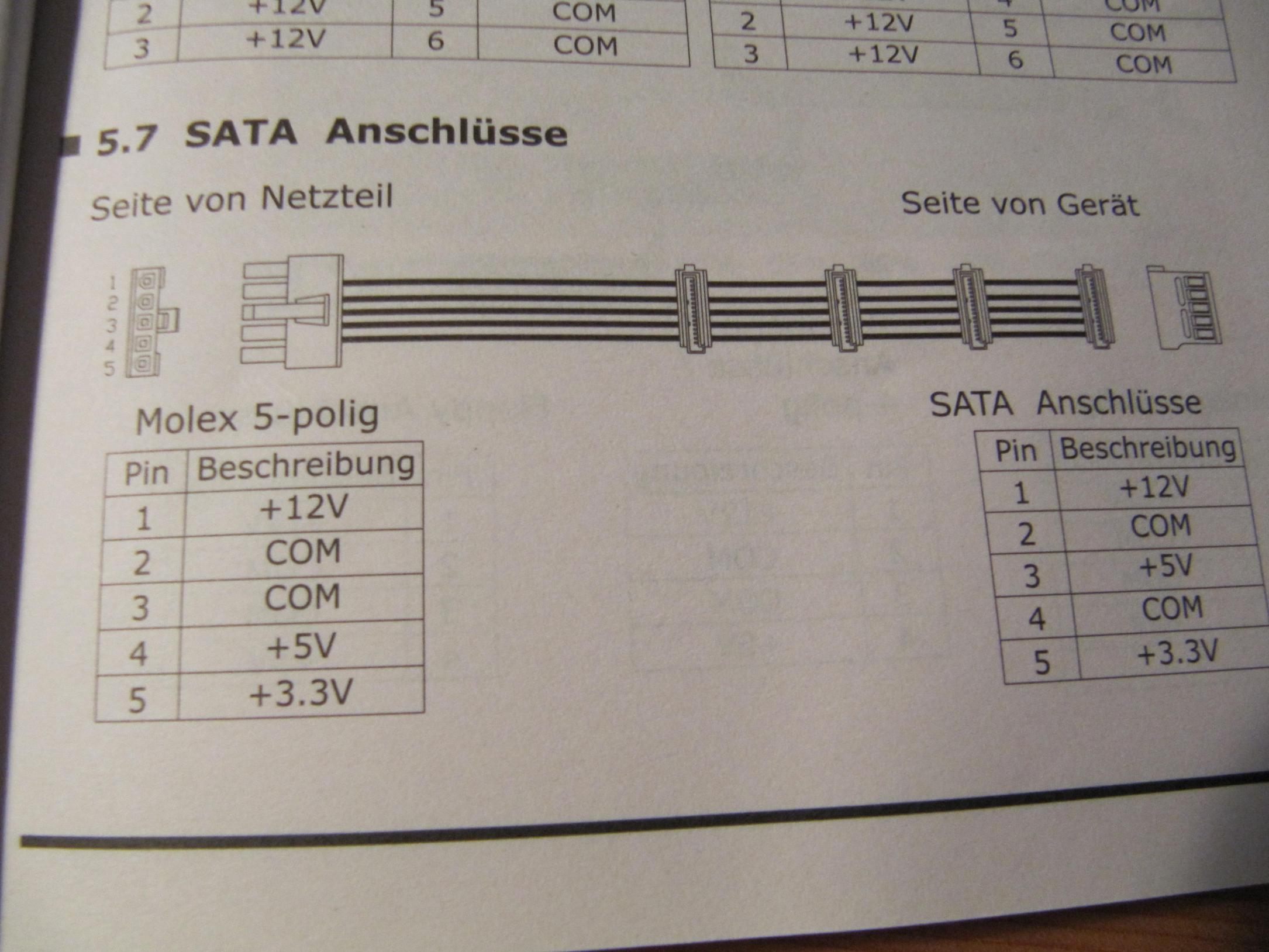 Die anderen beiden 4pin Molex anschluesse kommen zum Glueck direkt ,ohne Verlaengerungskabel aus.