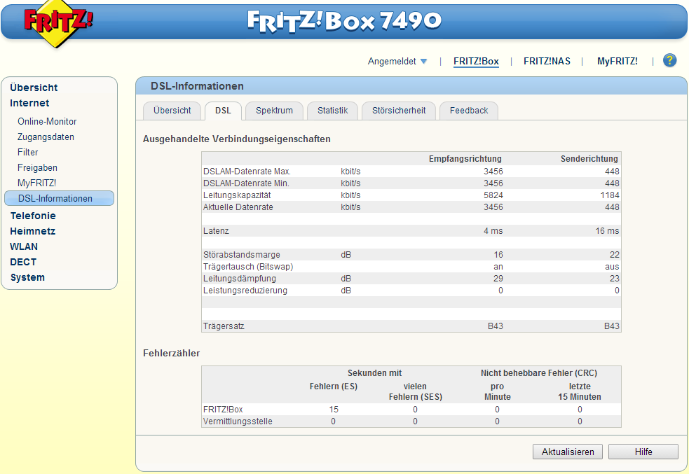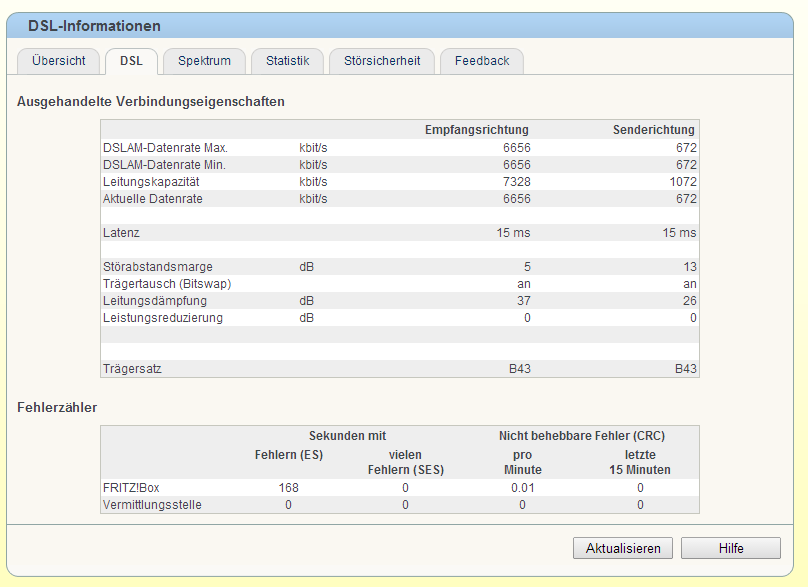 Meine alte Fritte 7170 mit TAE-DSL-Kabel samt Laptop und LAN-Kabel morgen mal mitbringen und einmal zu gucken, ob die Werte auslesbar sind. - Zeigt mir die Fritz!Box die DSL-Informationen an, sprich Dämpfung, Leitungskapazität, DSLAM min/max?
