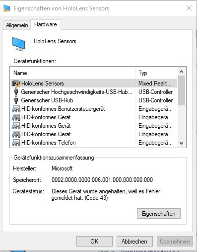 Dann habe ich meine Graka durch eine RTX 2080 ersetzt um da mal ein bisschen power reinzbringen. Grakatreiber installiert, Brille angeschlossen, wird nun als Hololens Sensors erkannt und es steht dabei es gibt ein Treiberproblem!