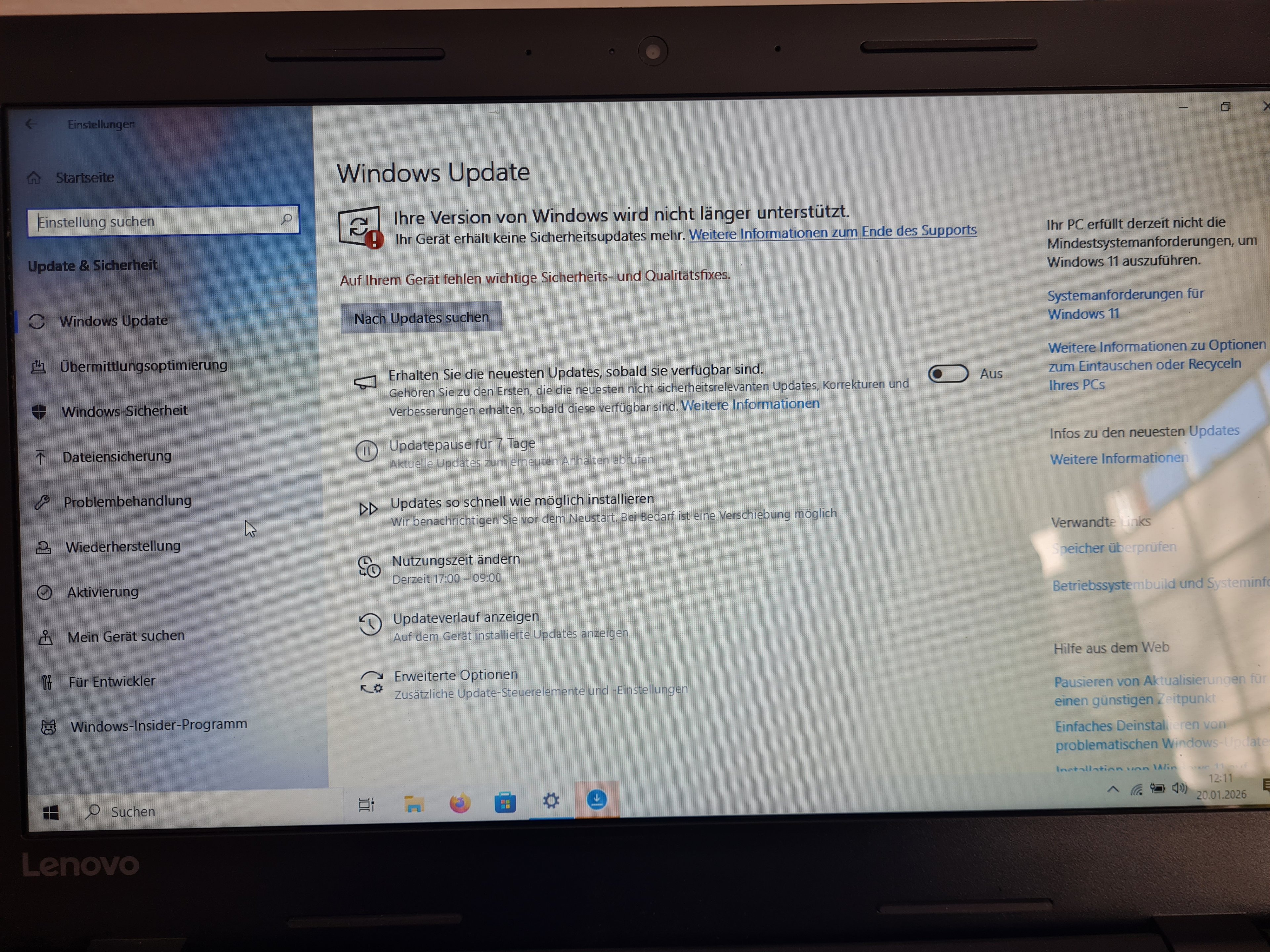 Es wird auch gemeldet, das wichtige Updates fehlen, aber die kommen nicht. Siehe Screenshot