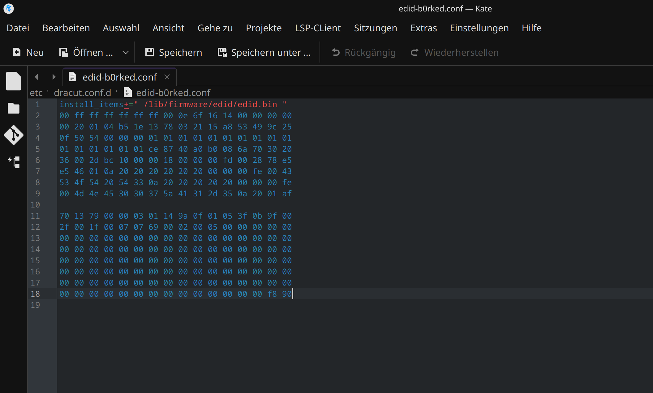 Leider hat der Blob nicht das für den Kernel benötigte Format. Zum Glück gibt es dafür bereits ein kleines Tool, das man allerdings selber kompilieren muss. Hier am Beispiel Manjaro: