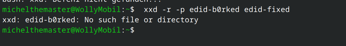 Führ das nochmal aus aber nur mit dem Code der da eigentlich reingehört also beginnend bei xxd ... bis -fixed.