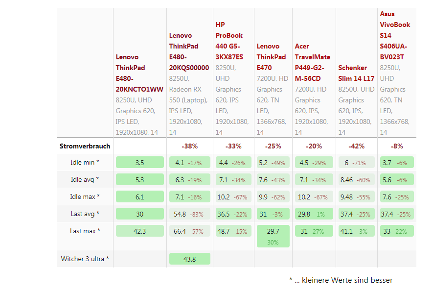 Sieht man auch bei den Lenovo Ideapad 720s Tests bei Notebookcheck vom i5 8250 und RR 2700U. Im Schnitt braucht das Intelsystem mehr.