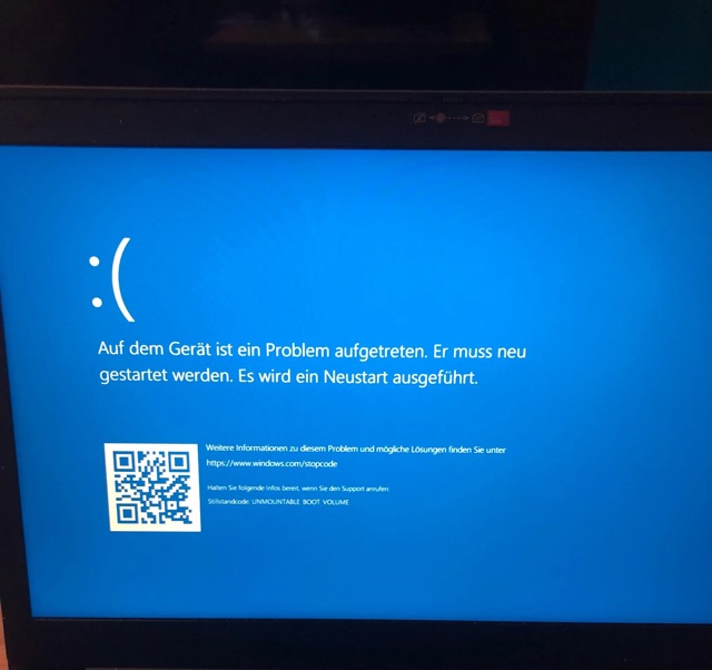 Als der Prozess fertig war, ist mein Laptop neugestartet und ich habe das Passwort von Veracrypt eingegeben. Allerdings startete der Laptop nicht - ich bekam nur einen blauen Bildschirm mit der Meldung siehe Foto. Seit dem habe ich dieses Problem beim Starten. Habe mir jetzt über einen anderen Laptop Windows 10 auf einen Stick gemacht und den beim Starten eingesteckt, aber das Problem besteht nach wie vor