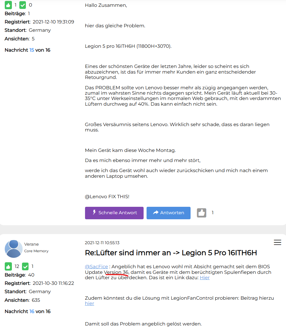 Mal schauen, was Lenovo jetzt als nächstes abzieht. Ich habe eine Mail geschrieben, dass ich diese Geräuschkulisse im Leerlauf so nicht dulde und das Problem behoben werden MUSS.