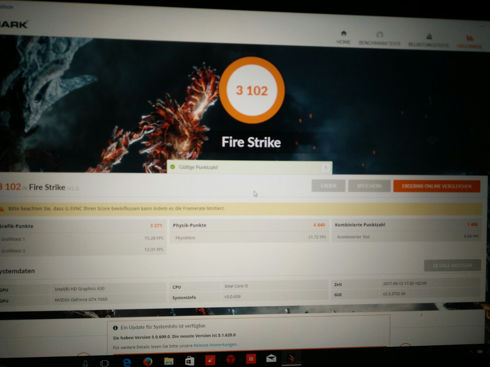 Bei dem Test "Fire Strike" nur 3271 Punkte (sollte auch mindestens das dreifache sein)