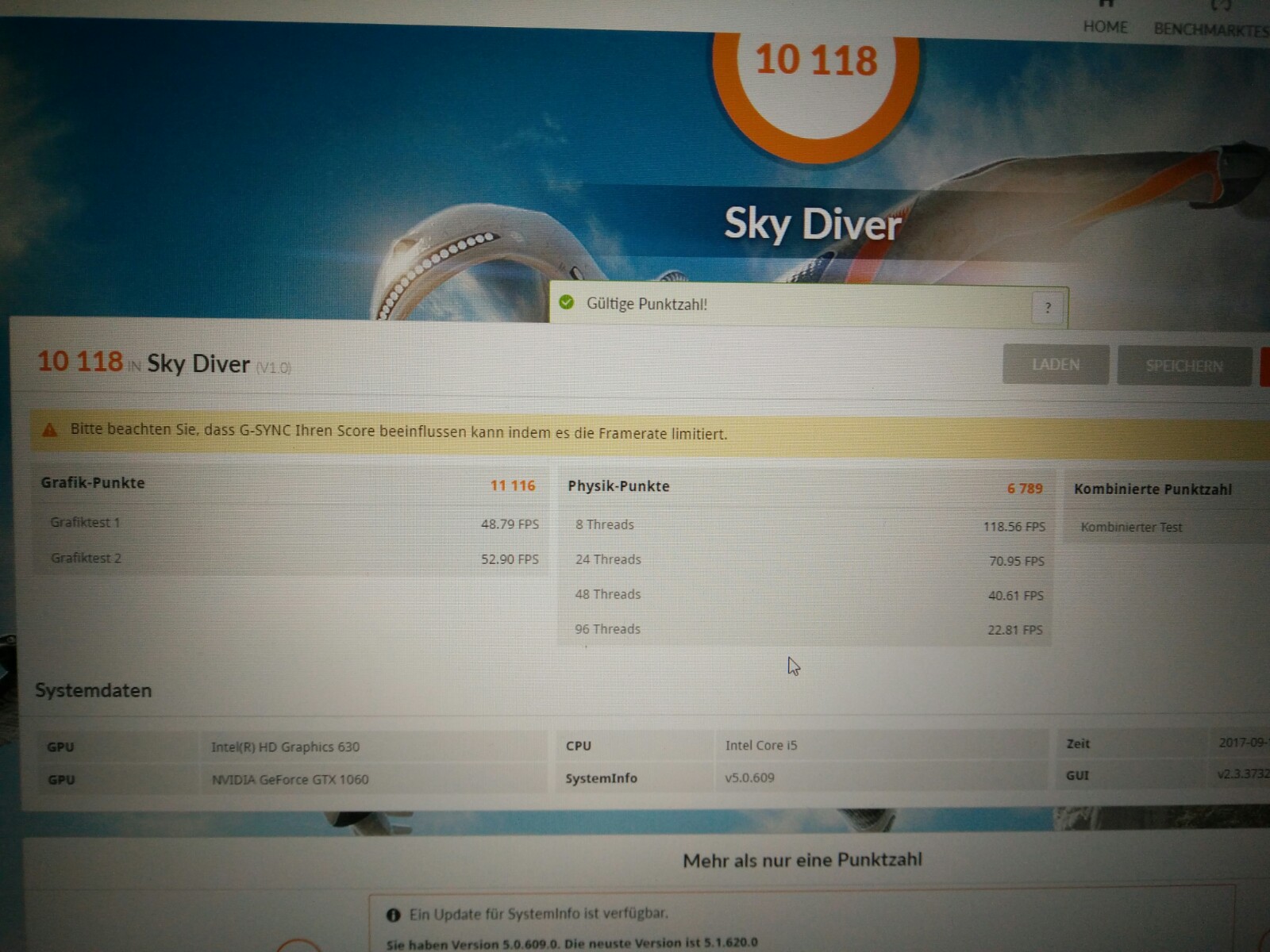 - In 3dmark erreicht er gerade mal 11116 Grafik-Punkte bei dem test "Sky Diver" (er sollte eigentlich das dreifache erreichen)