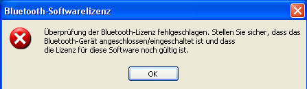 Einen seltsamen Fehler bekomme ich periodisch wenn der Bluetooth eingeschaltet wird. Irgentwas mit Lizenz nicht gültig. Siehe Bild im Anhang.