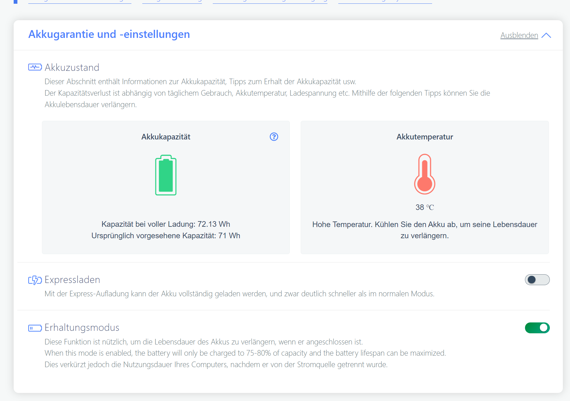 Welche Akku Einstellungen nehme ich unter Windows und/oder Lenovo Vantage vor, dass der festverbaute Akku geschont wird?