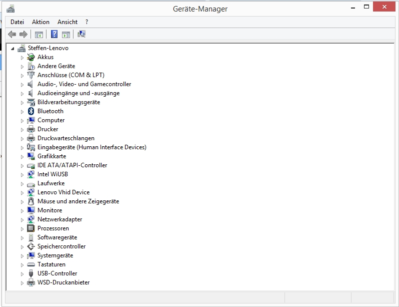 Im Gerätemanager ist alles normal bis auf den Punkt "Andere Geräte". Da wird ein kleines blaues Fragezeichen eingeblendet und das betreffende Gerät ist mit "LIVIO_CONNECT" betitelt. Sonst sehe ich keinerlei Konflikte oder fehlende Treiber. Habe kurz nach dem Update auf Windows 8.1 alle Treiber von der Lenovo-Seite heruntergeladen und installiert. Unter "Grafikkarte" (im Gerätemanager) ist sowohl "Intel(R) HD Graphics Family" als auch "NVIDIA GeForce GT 730M" als jeweils funktionierend aufgelistet.