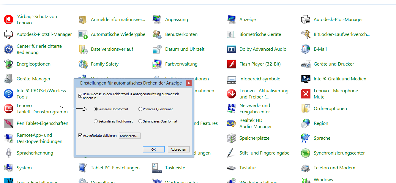 Autorotation funktioniert nicht, so dass beim Tablet Modus das Bild auf dem Kopf steht. Ursache:
