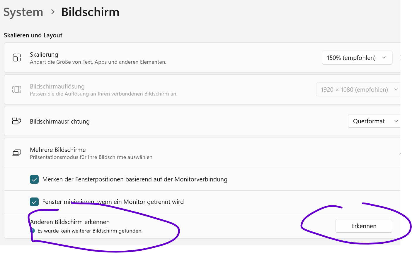 einen Monitor möchte ich erweitern
