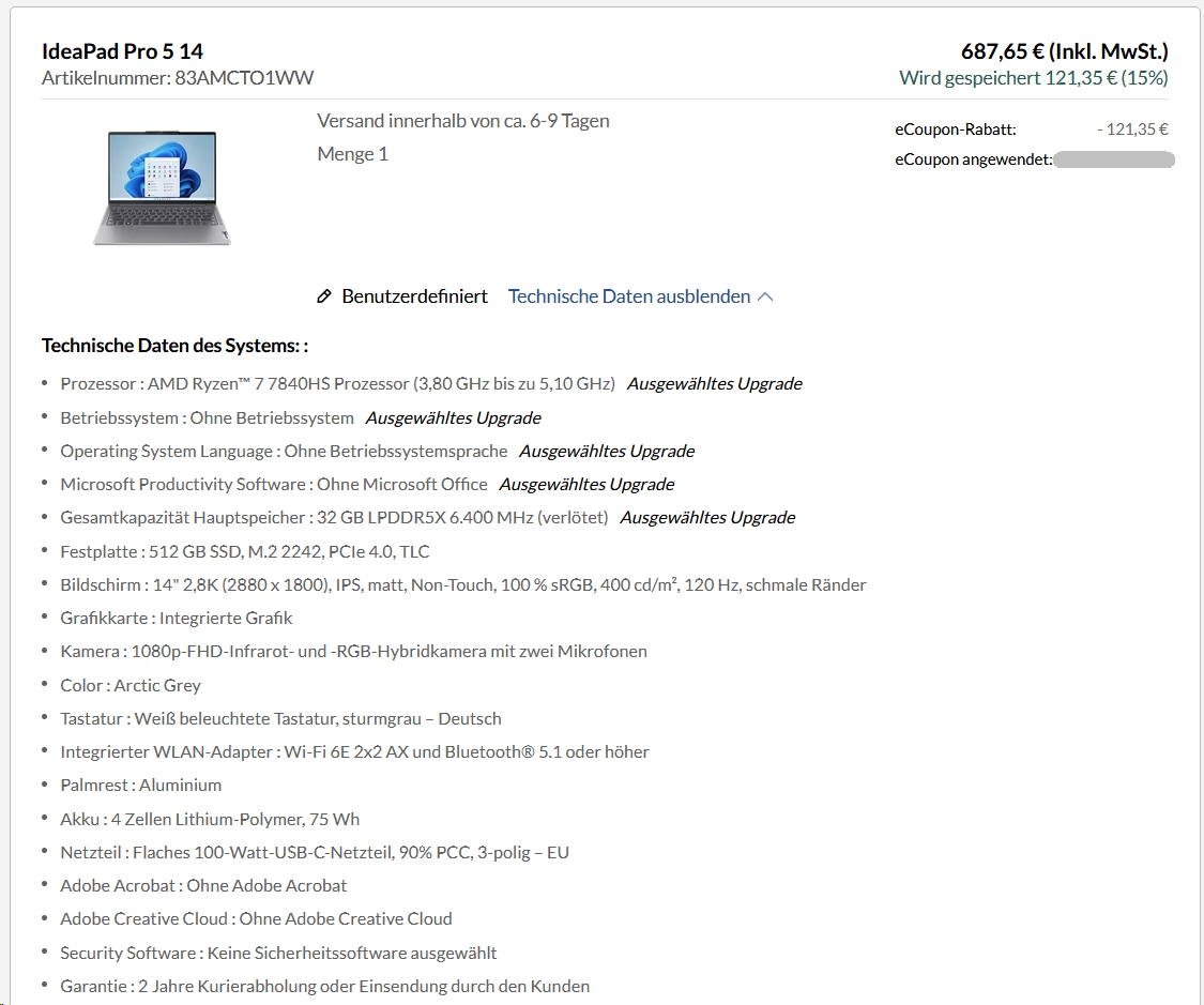 Warum nicht das aktuelle IdeaPad Pro (hab selbst das Yoga 7, s. Signatur) in Top Ausstattung, zum Top Preis: