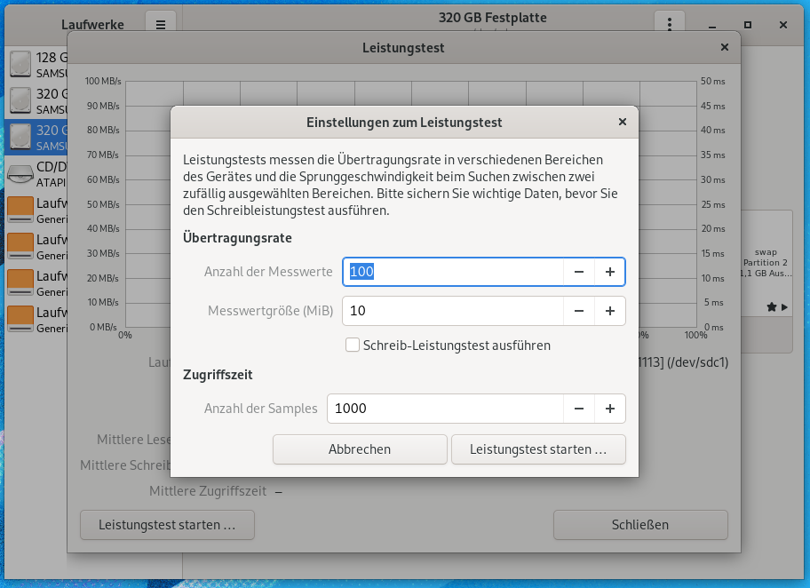 ich suche eine Möglichkeit um unter Linux die reale Lese- und Schreibgeschwindigkeiten auf eine Festplatte an verschiedenen Ports sowie von meinem NAS zu ermitteln. Ich habe das hier https://wiki.ubuntuusers.de/Festplatten-Geschwindigkeitstest/ gefunden sowie den Hinweis auf die Alternative Bonnie++, ich bin mir aber nicht sicher ob das das ist was ich will. So ein Test sollte ja auch größere und kleinere Dateien beinhalten. Konkret will ich meine Backup-Datenträger testen.