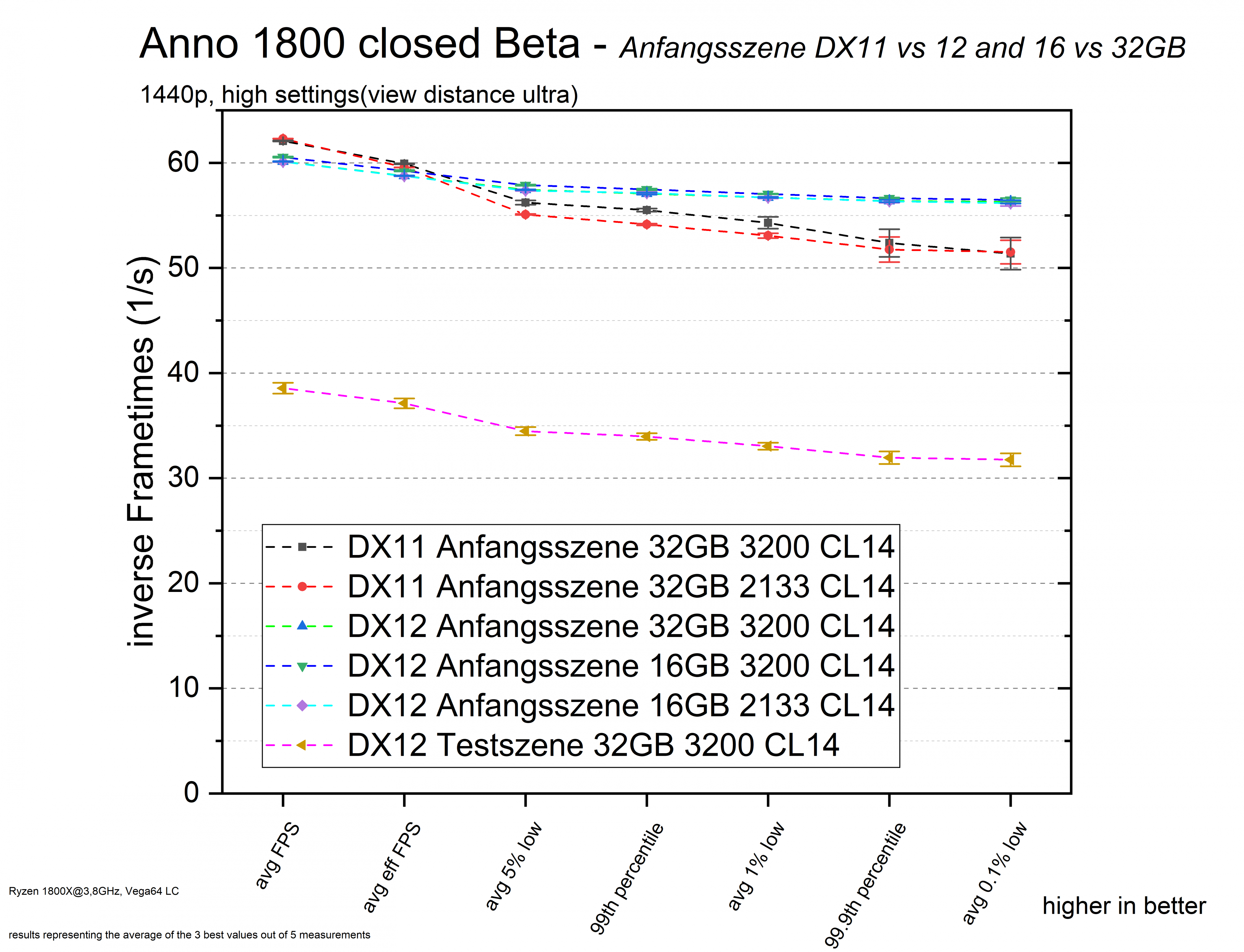Wie man sieht reagiert Anno 1800 gut auf mehr Ram Geschwindigkeit...auch wenn ich hier für die bessere Lesbarkeit die Scalierung geändert habe, die erst bei 20 FPS anfängt!
