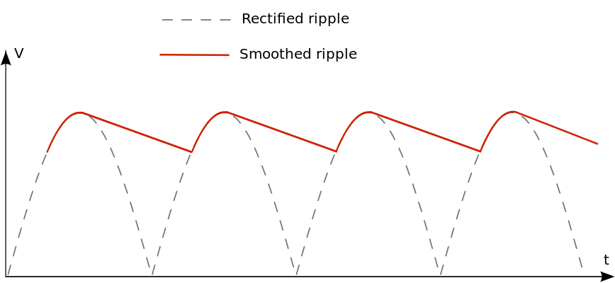 Restwelligkeit entsteht aus Folge der Umwandlung der Wechselspannung in Gleichspannung. Die Gleichspannung enthält dabei nach wie vor Fragmente der Sinuskurve der Wechselspannung.