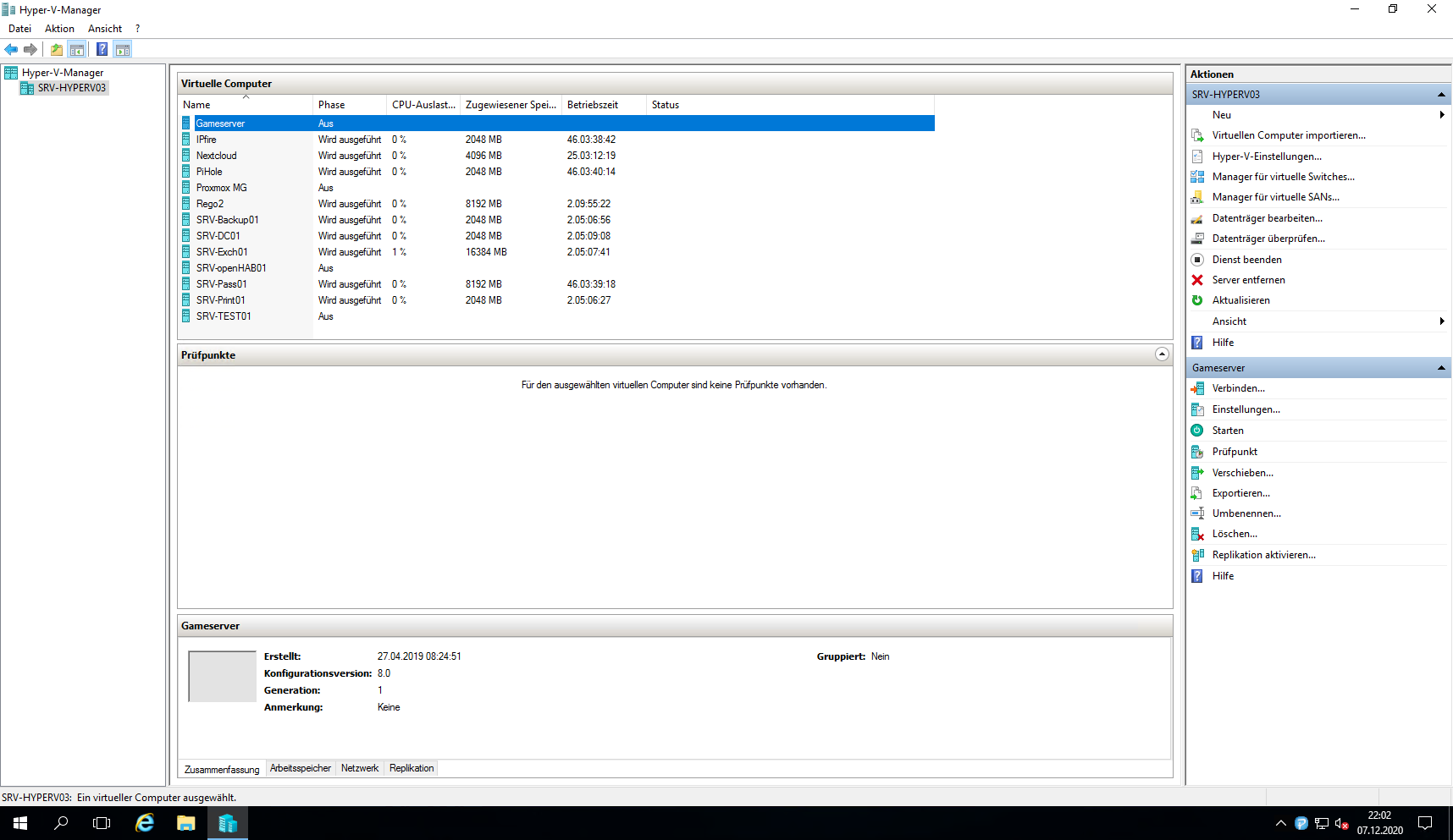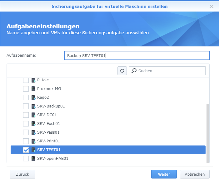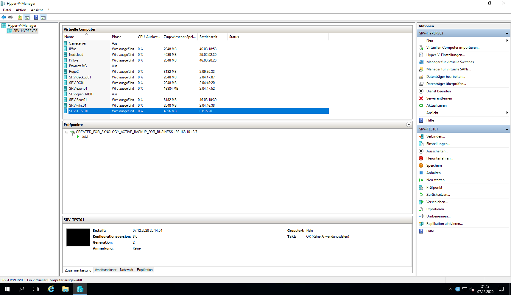 Um das Ganze zu Testen habe ich eine Test-VM namens "SRV-TEST01" mit Windows Server 2019 installiert, gesichert und anschließend gelöscht.