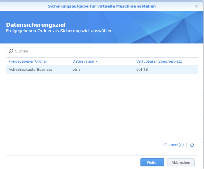 - gemeinsamen Ordner für Active Backup for Business erstellen