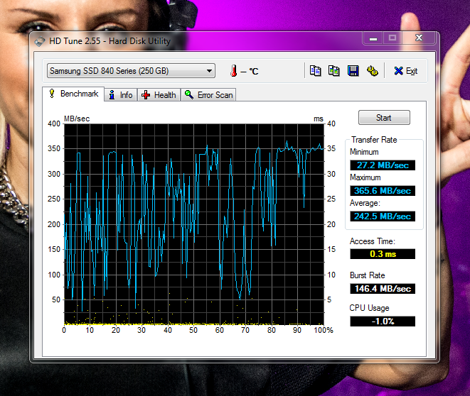 Smartbomb schrieb:Zur 840 Evo: ist auch in einem KanzleiPC seit Sommer verbaut, habe aber bisher nichts unternommen. Und seit die Meldung kam, dass auch nach dem Firmwareupdate das Problem weiter besteht, warte ich mal auf die Endlösung. Die Mitarbeiterin die dort sitzt merkts im 08/15 Officebetrieb eh nicht, dass da die Performance etwas eingeht![]()