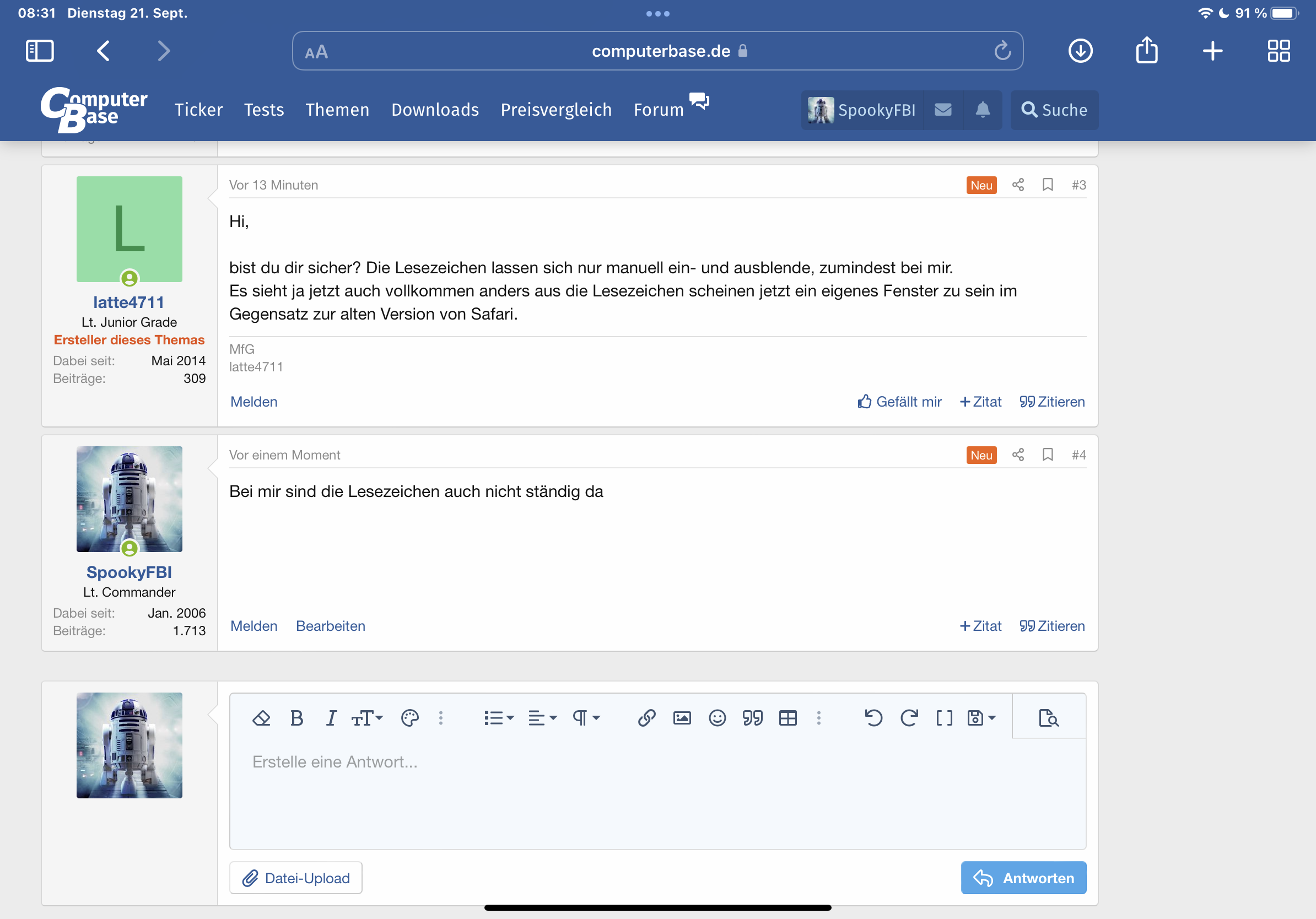 Lesezeichen jetzt immer aktiv unter iPadOS 15?