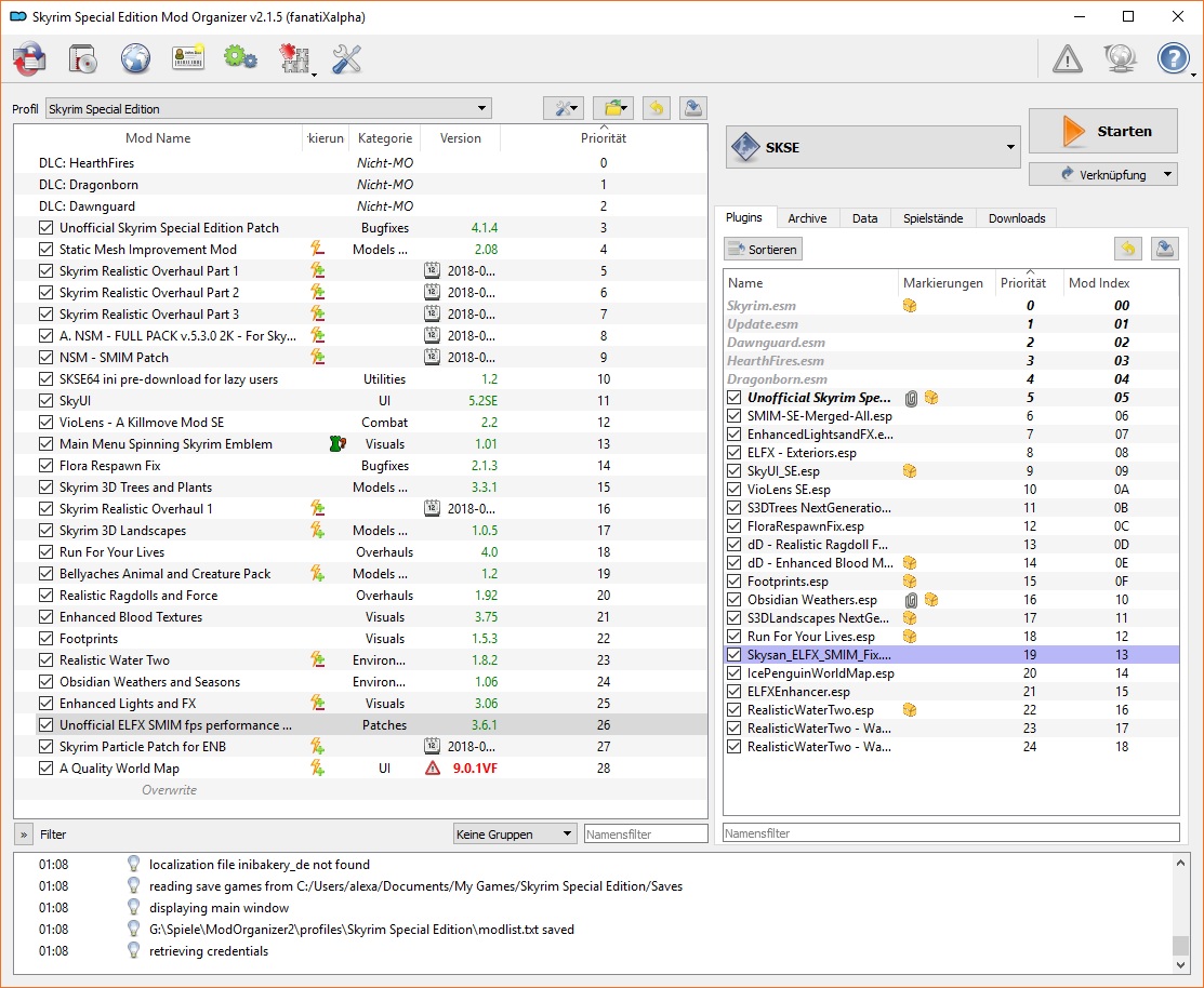 Wie schon erwähnt, LOOT und SSEEdit sind schon durchgeführt worden.