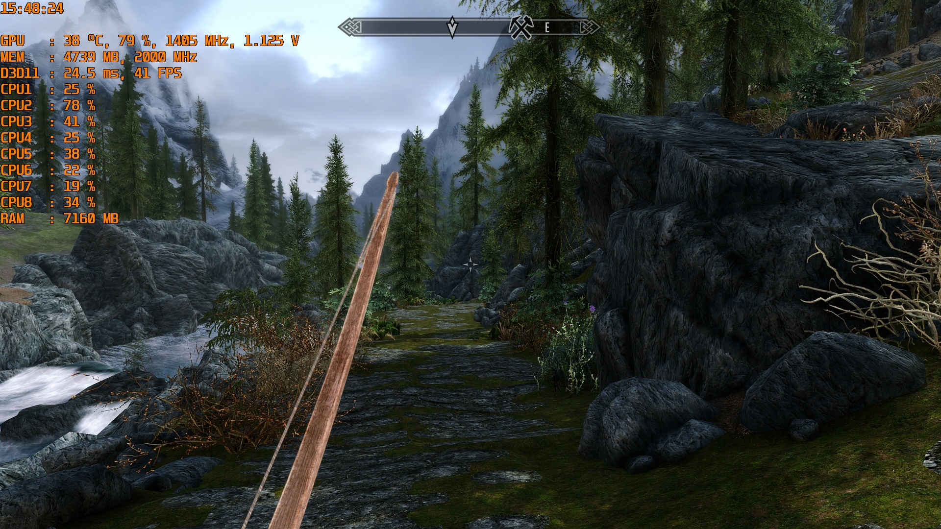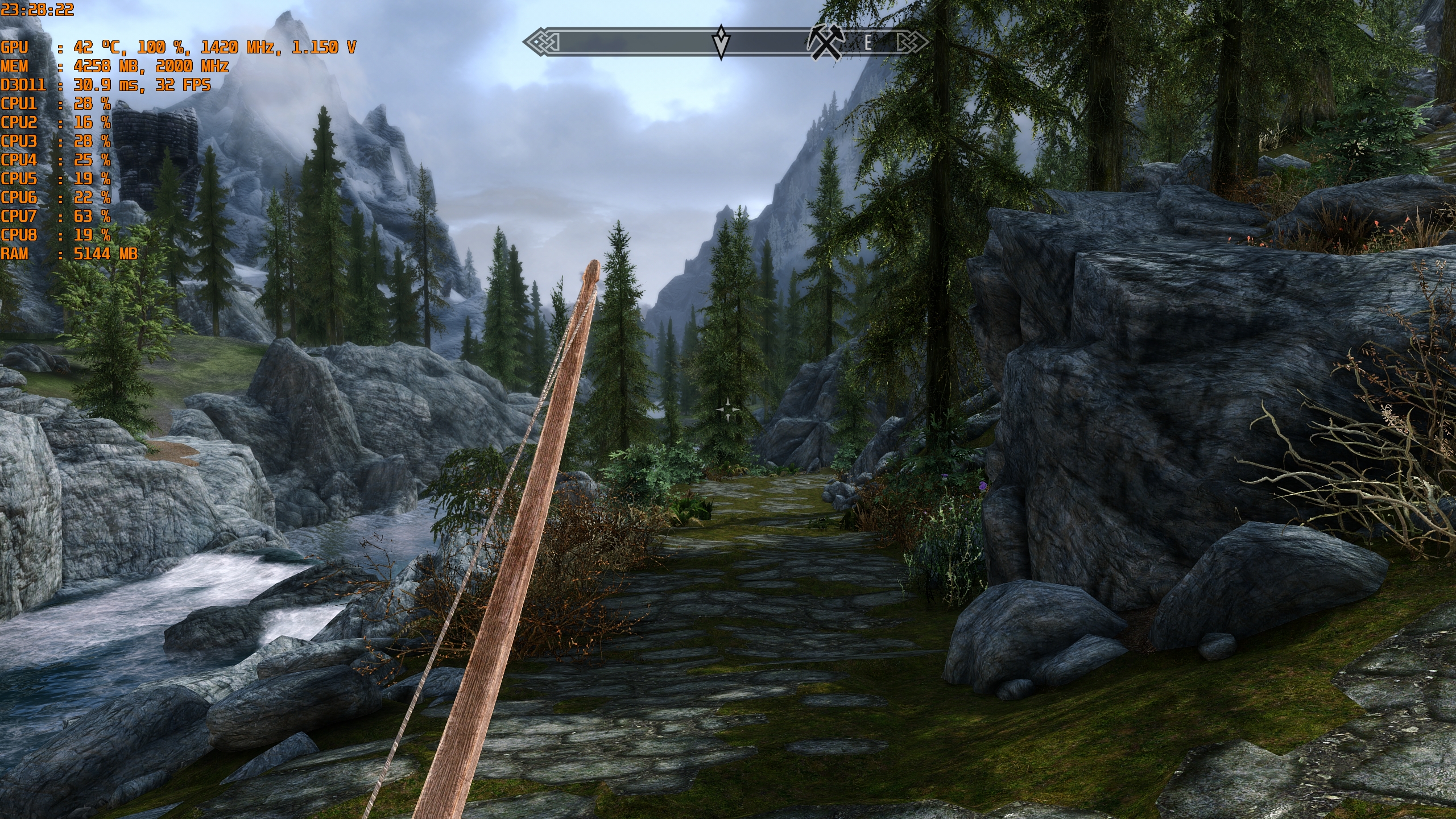 Schließlich konnte man auf den Bildern ja sehen, dass in WQHD mit niedrigen Einstellungen die GPU ziemlich ins Limit gefahren ist. Die 1400MHz scheinen übrigens nicht stabil zu sein für Skyrim, das heißt hier kriege ich keine weitere Schützenhilfe. Wenn die Basis aus dem Complete-Mod auch der GPU hilft ist das natürlich was anderes, aber so hat sich das ja nicht angehört. Oder liege ich da falsch?