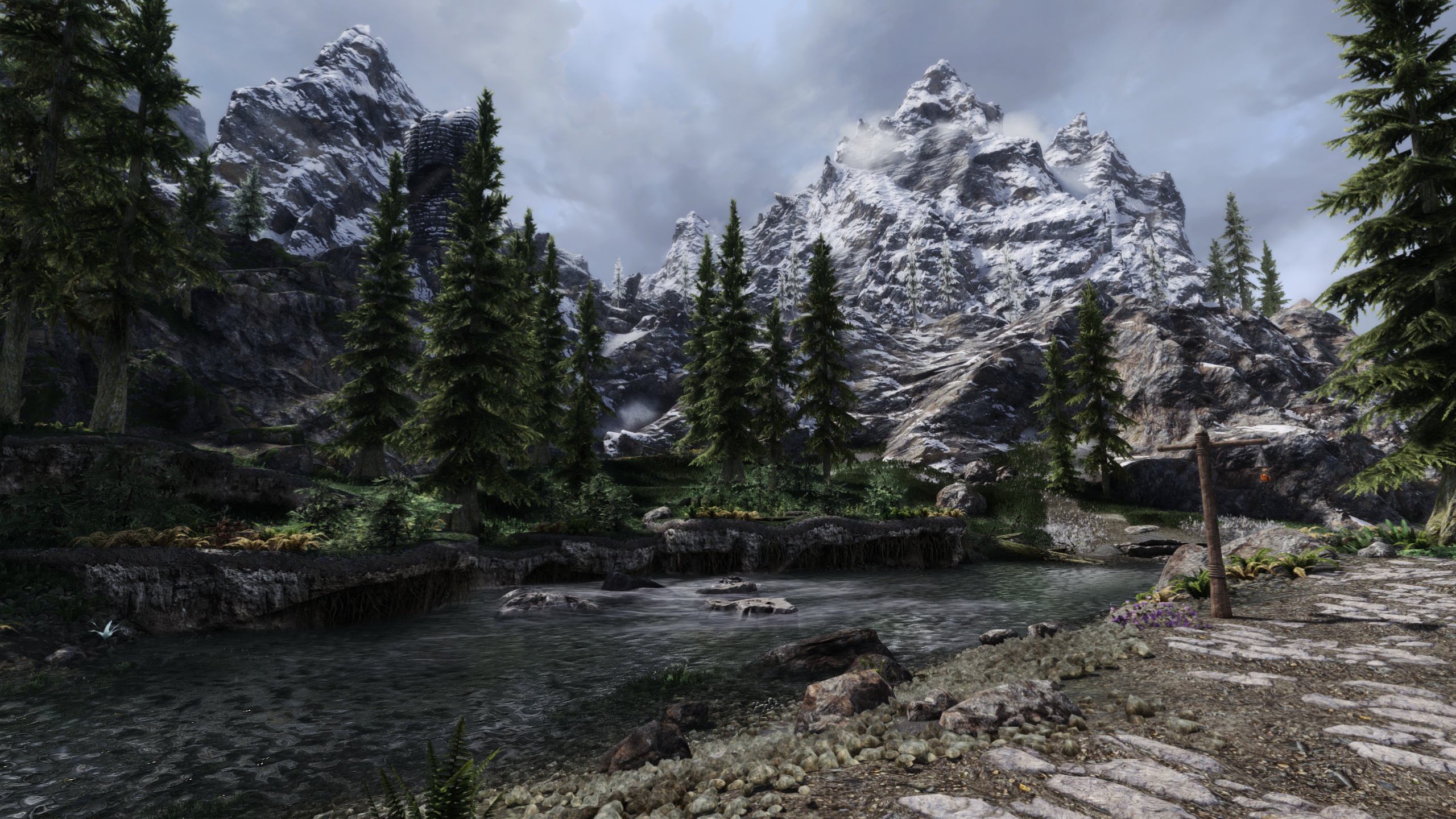 Wenn man ein bisschen mehr will, würde ich hierzu noch Enhanced Vanilla Trees, High Poly Project, Realistic Water Two, Enhanced Lights and FX und Majestic Mountains mit Cathedral Landscapes installieren. Die Mods mit Installationshinweisen sind im kompletten Guide, oder sucht euch die Mods auf Nexus per Suchfunktion. Verwendet dann aber auch Loot!