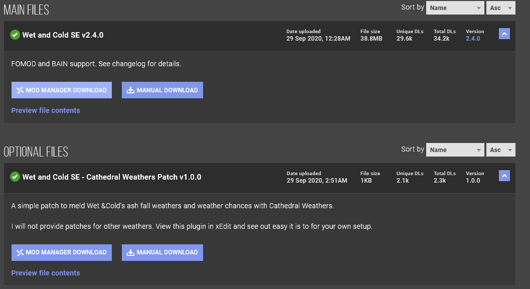 Den Patch zu Cathedral Weathers brauchst du dann, wenn du beide Mods (Wet and Cold SE UND Cathedral Weathers) nutzt.