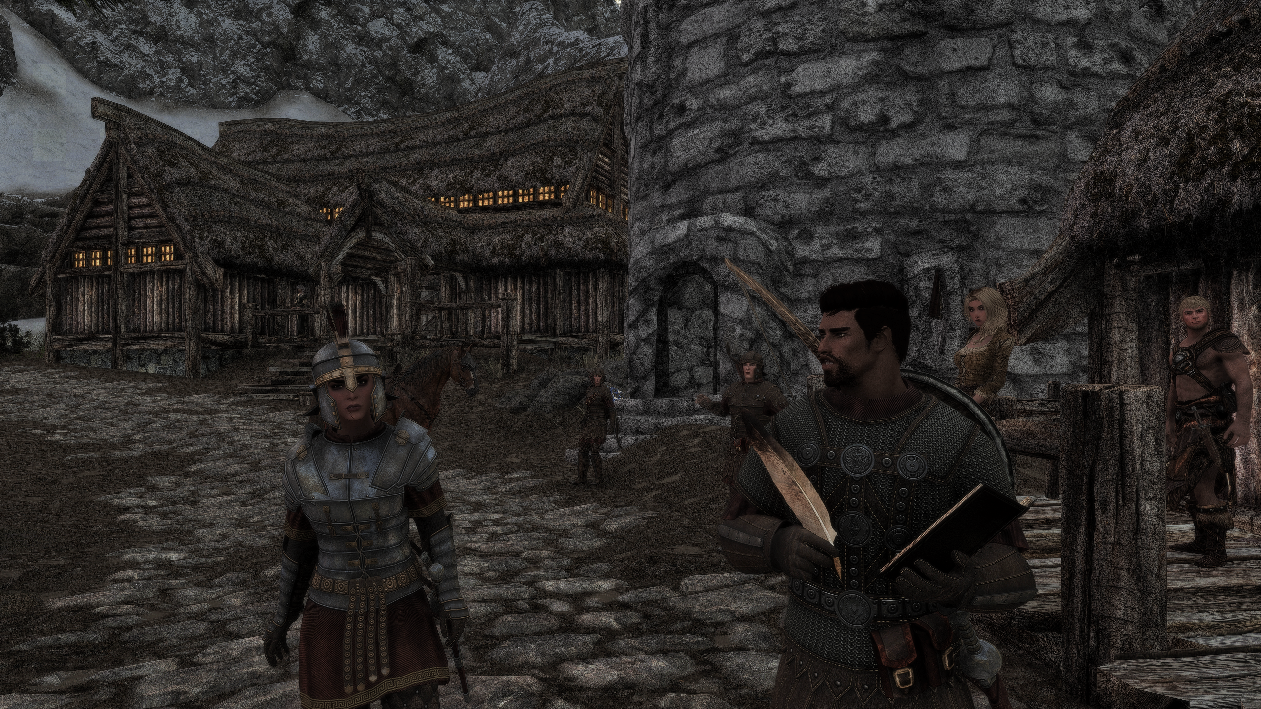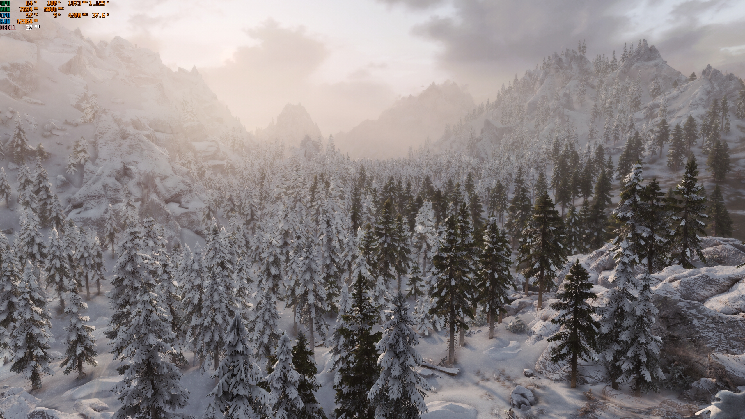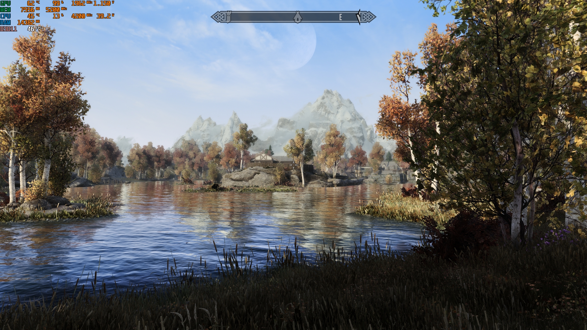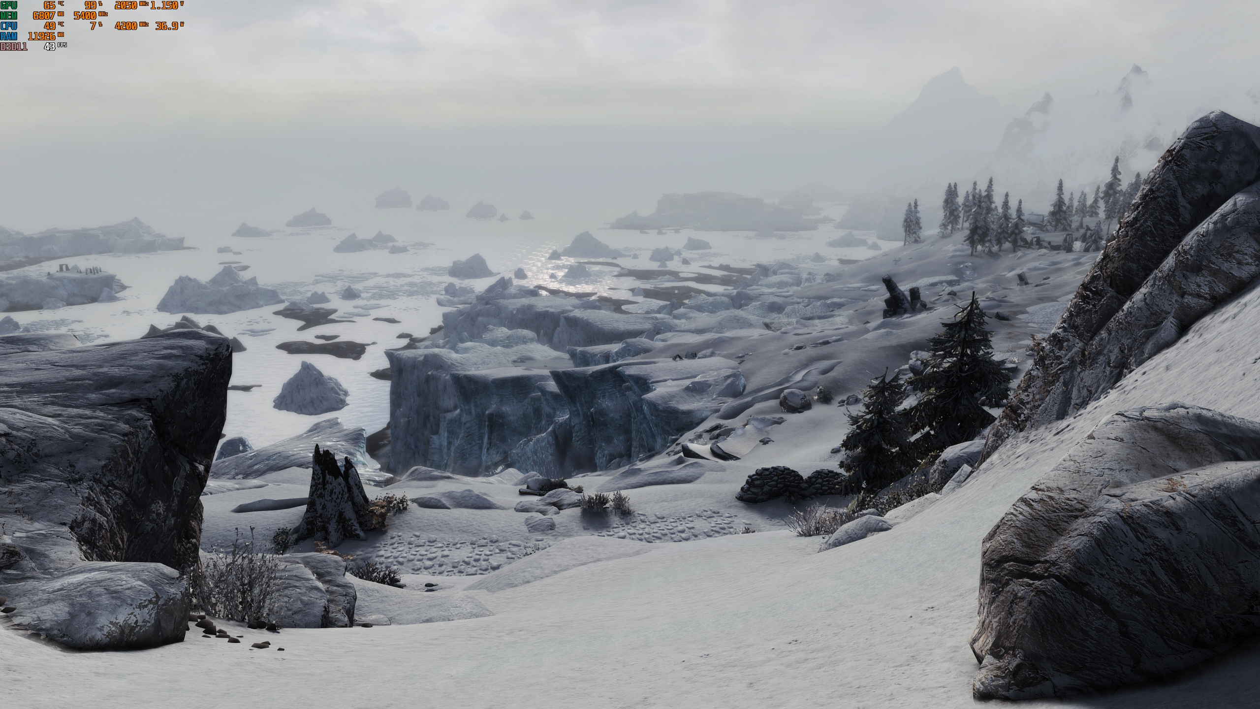 WQHD, BethINI High + BethINI Recommended Tweaks, Veydosebrom Vanilla Landscape + Sparse INI Setting (default geht nicht wegen den FPS), NVT ENB (Full Quality Ordner) für Cathedral Weathers, mit zusätzlich aktivierten ENB Effekten, aber auf Medium Qualität (und nicht High oder Ultra). Mit den wundervollen HD LODs. Das Ganze sähe mit Ultra+ INIs sicher nochmal besser aus, aber naja, mehr geht halt nicht.