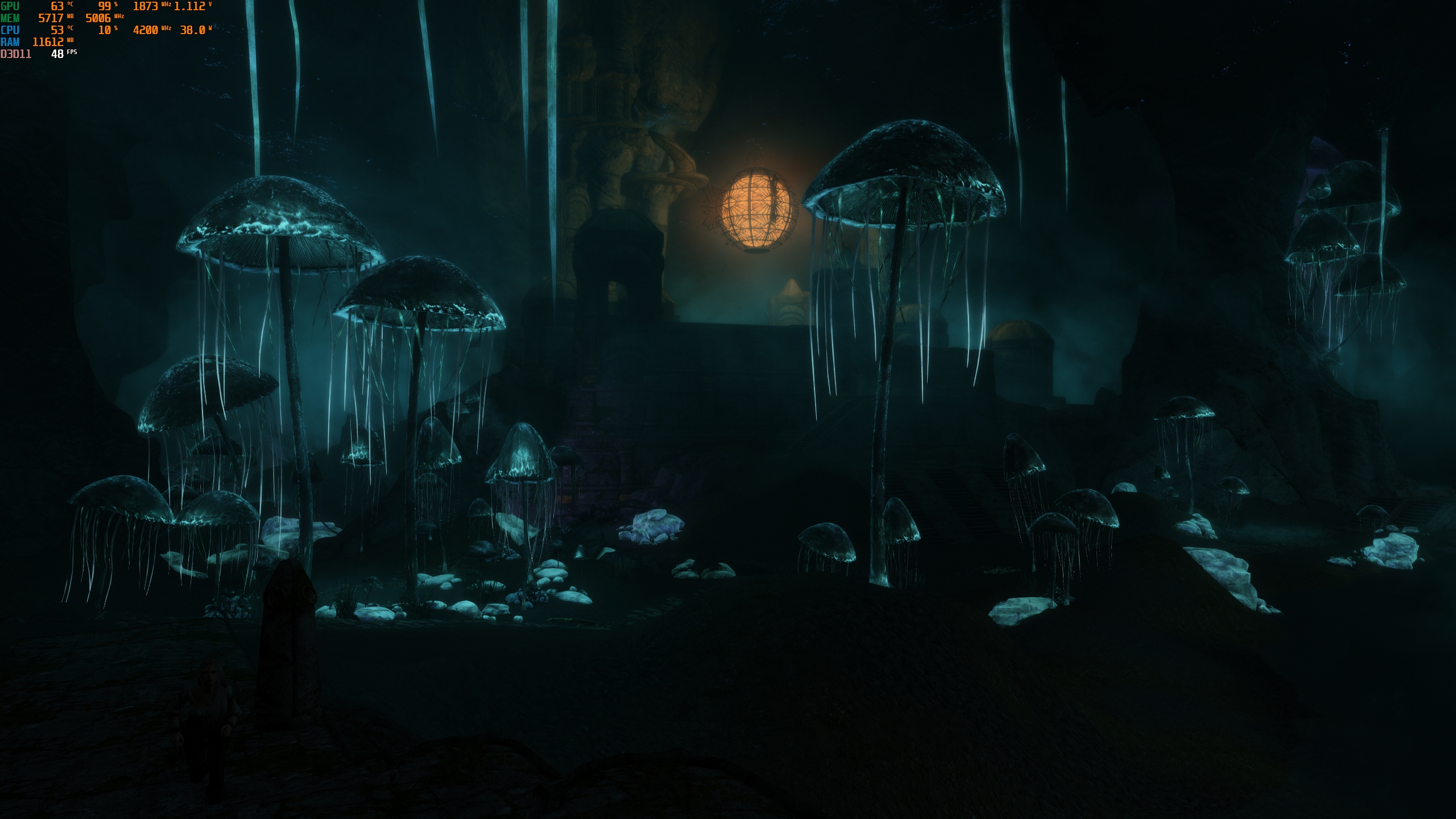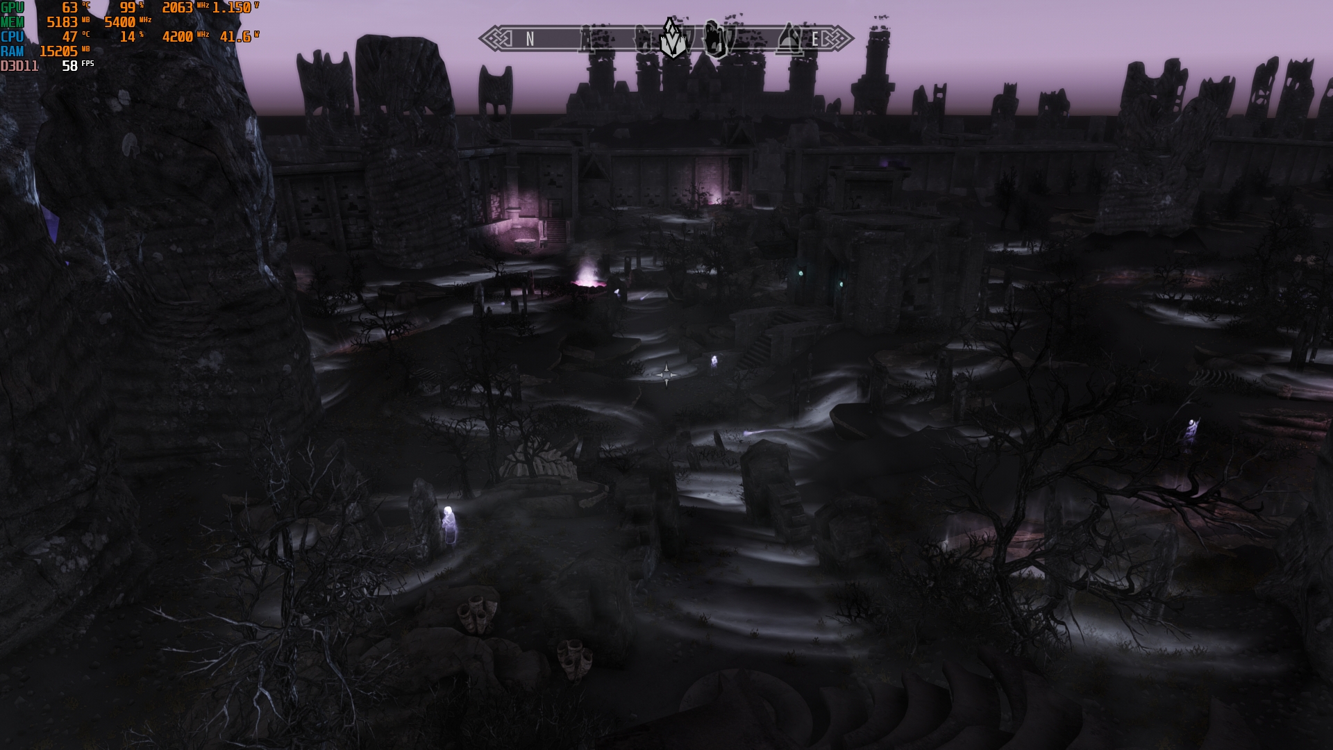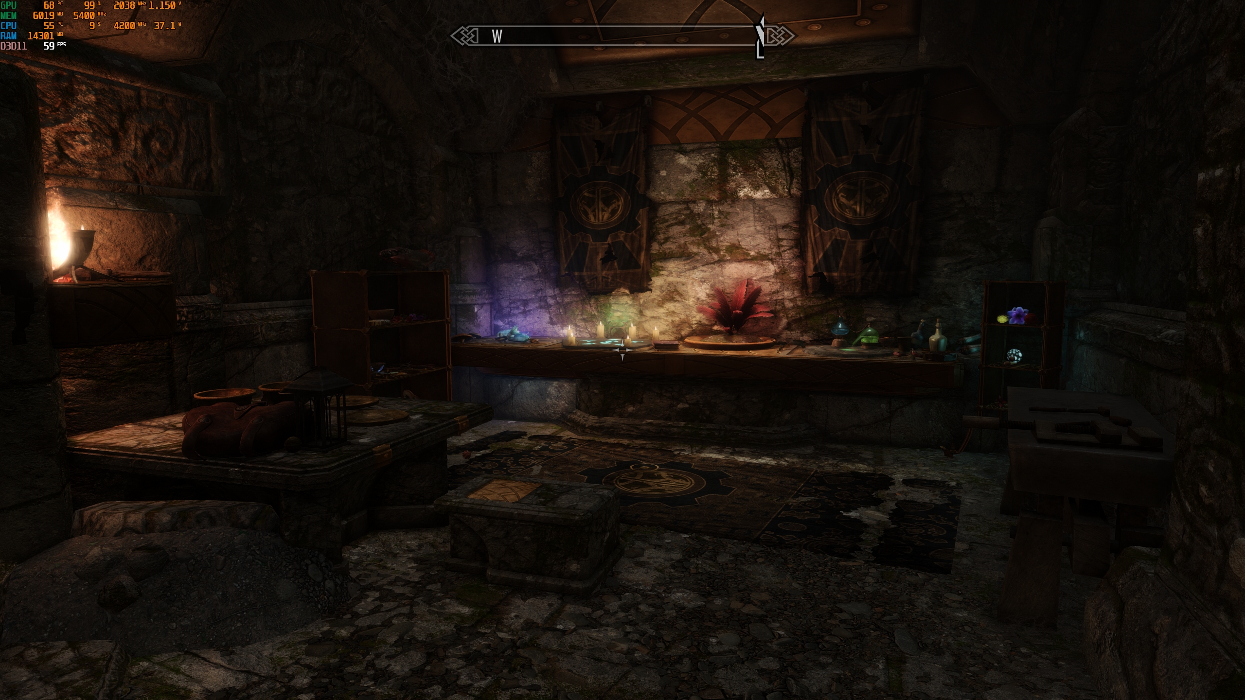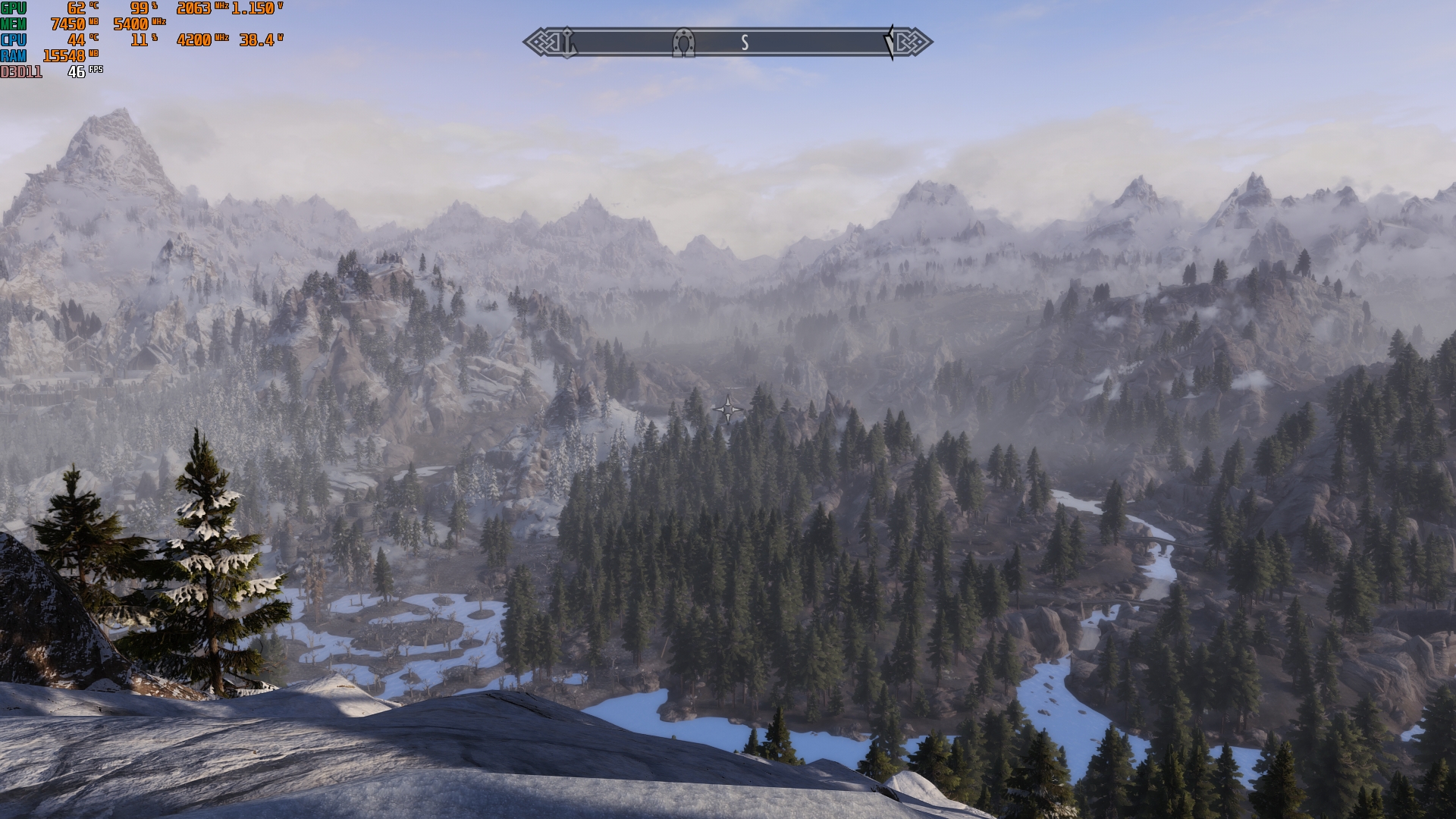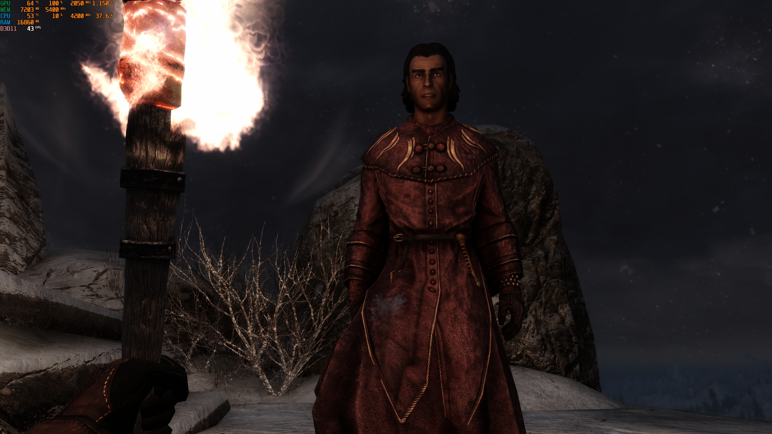 WQHD, BethINI High + BethINI Recommended Tweaks, Veydosebrom Vanilla Landscape + Sparse INI Setting (default geht nicht wegen den FPS), NVT ENB (Full Quality Ordner) für Cathedral Weathers, mit zusätzlich aktivierten ENB Effekten, aber auf Medium Qualität (und nicht High oder Ultra). Mit den wundervollen HD LODs. Das Ganze sähe mit Ultra+ INIs sicher nochmal besser aus, aber naja, mehr geht halt nicht.