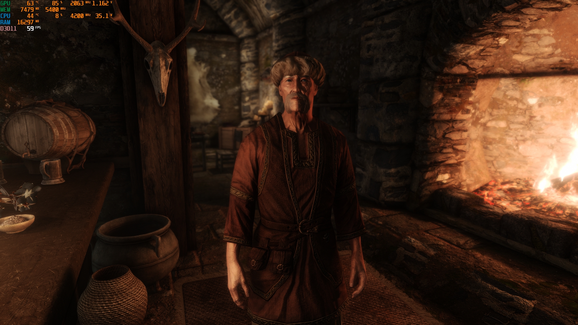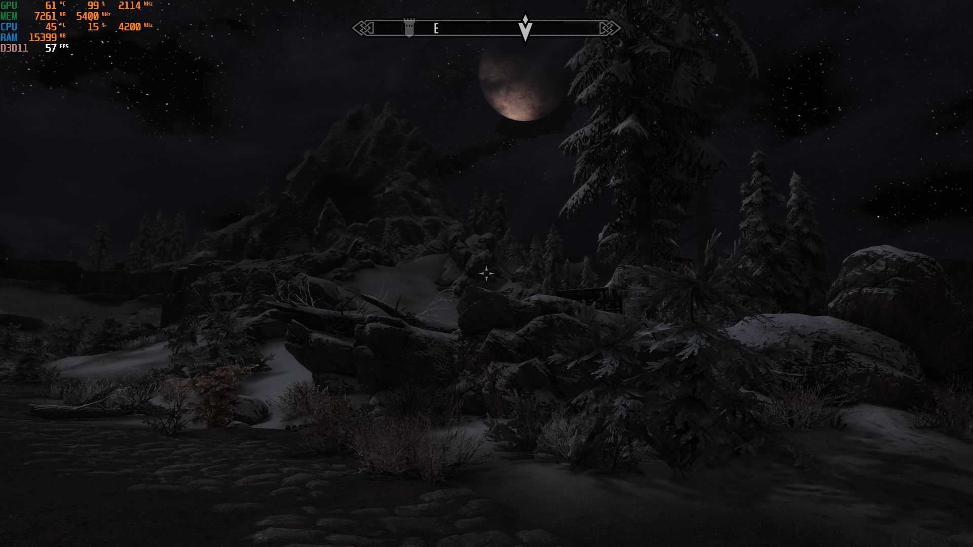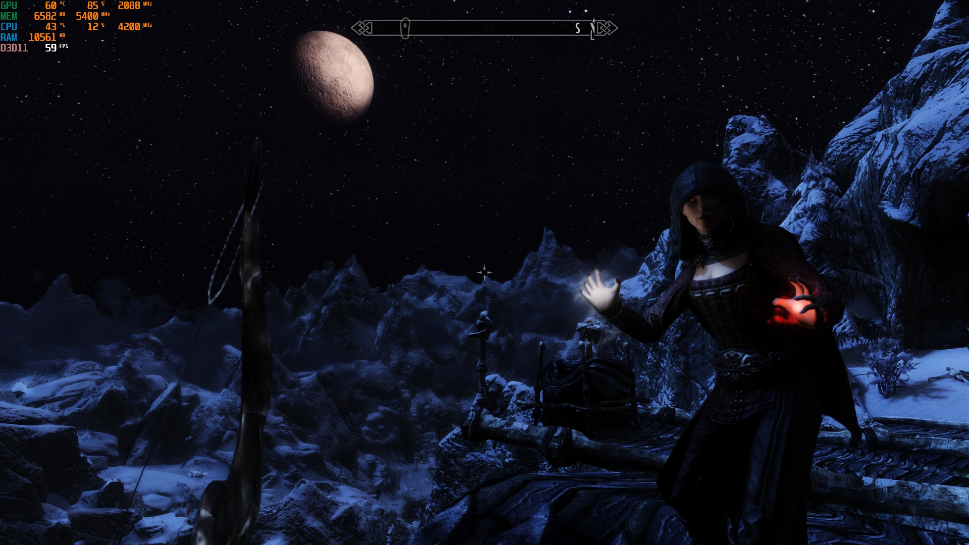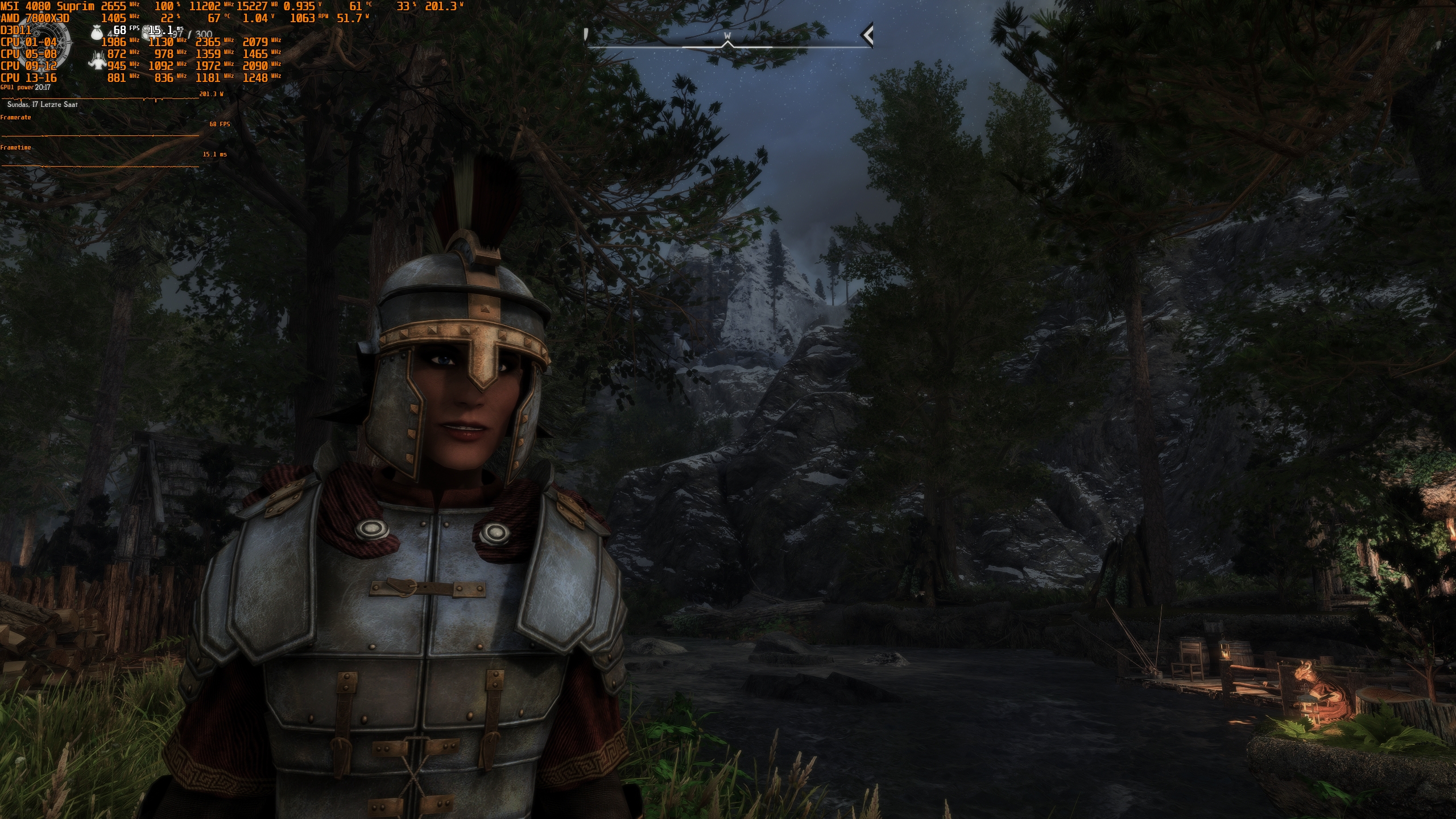 Ich bin aber an ENB und ReShade noch mal herangegangen, weil einige Parameter auf meinem (kalibrierten) Monitor nicht passten. Helle Bereiche waren teilweise ausgefressen, dunkle ohne Durchzeichnung, FireShader waren zu stark, SubsurfaceScattering für die Hautdarstellung ebenfalls, usw.