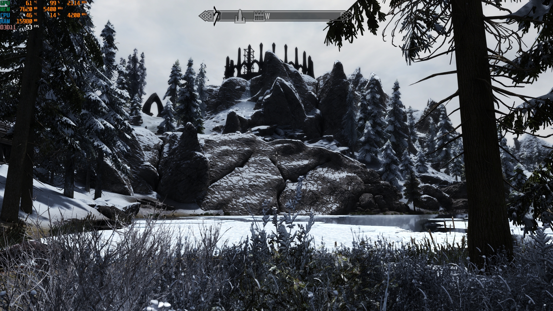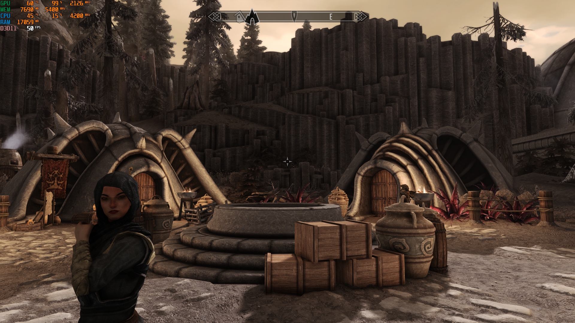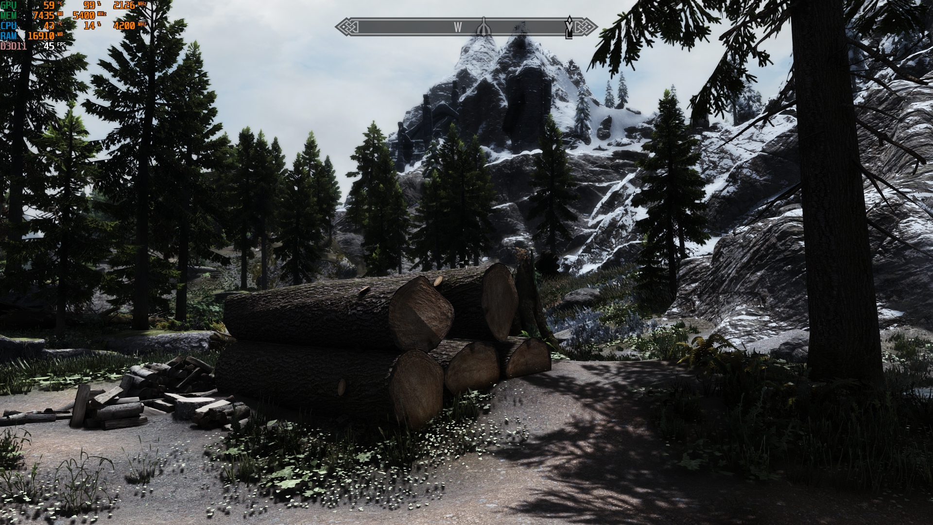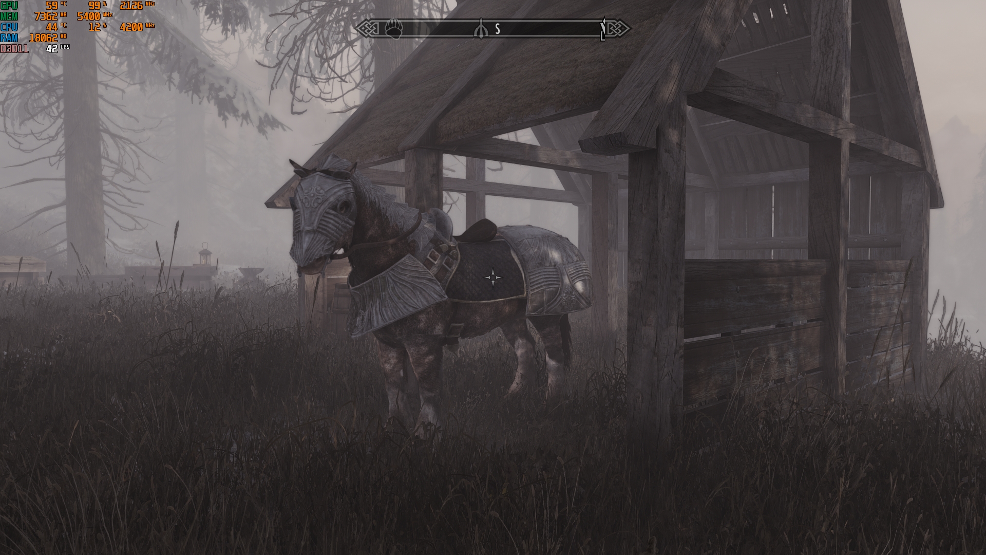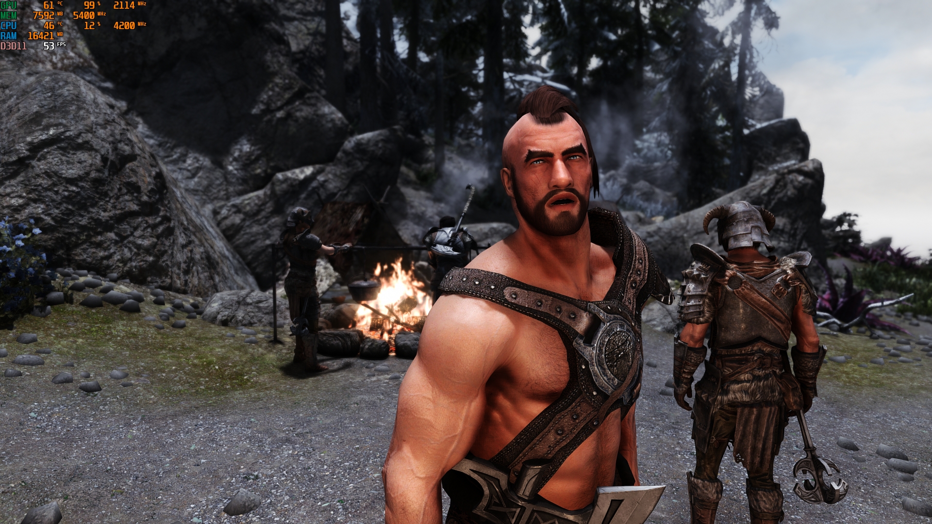 Es liegt an der Wetter Mod-ENB-ausmaximierte INIs + hohe Auflösung Kombi, die saftig GPU Leistung fordert. Auch wenn insbesondere Mods wie Veydosebrom, Embers HD, HLT, MM und DynDoLOD auch ein paar FPS kosten. Kommen dann noch VRAM Bomben wie Skyrim 202X hinzu, kriegt man jede Grafikkarte bis zum Erscheinen vom Skyrim Nachfolger gut beschäftigt