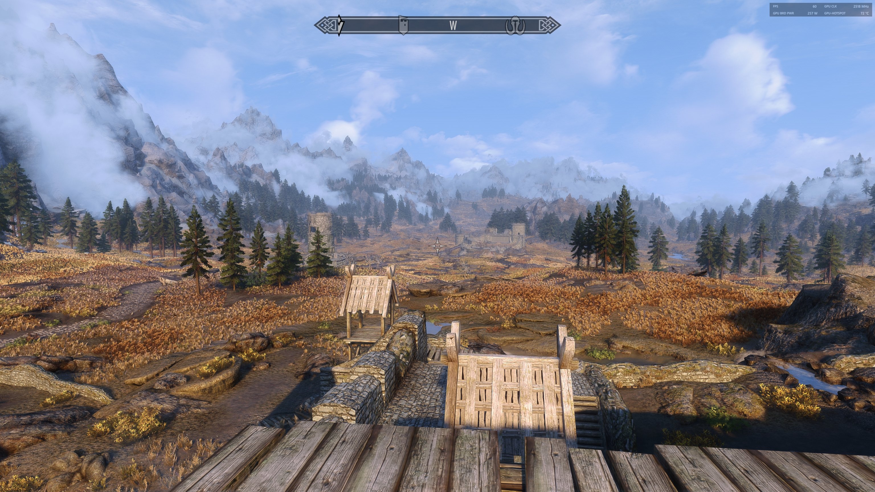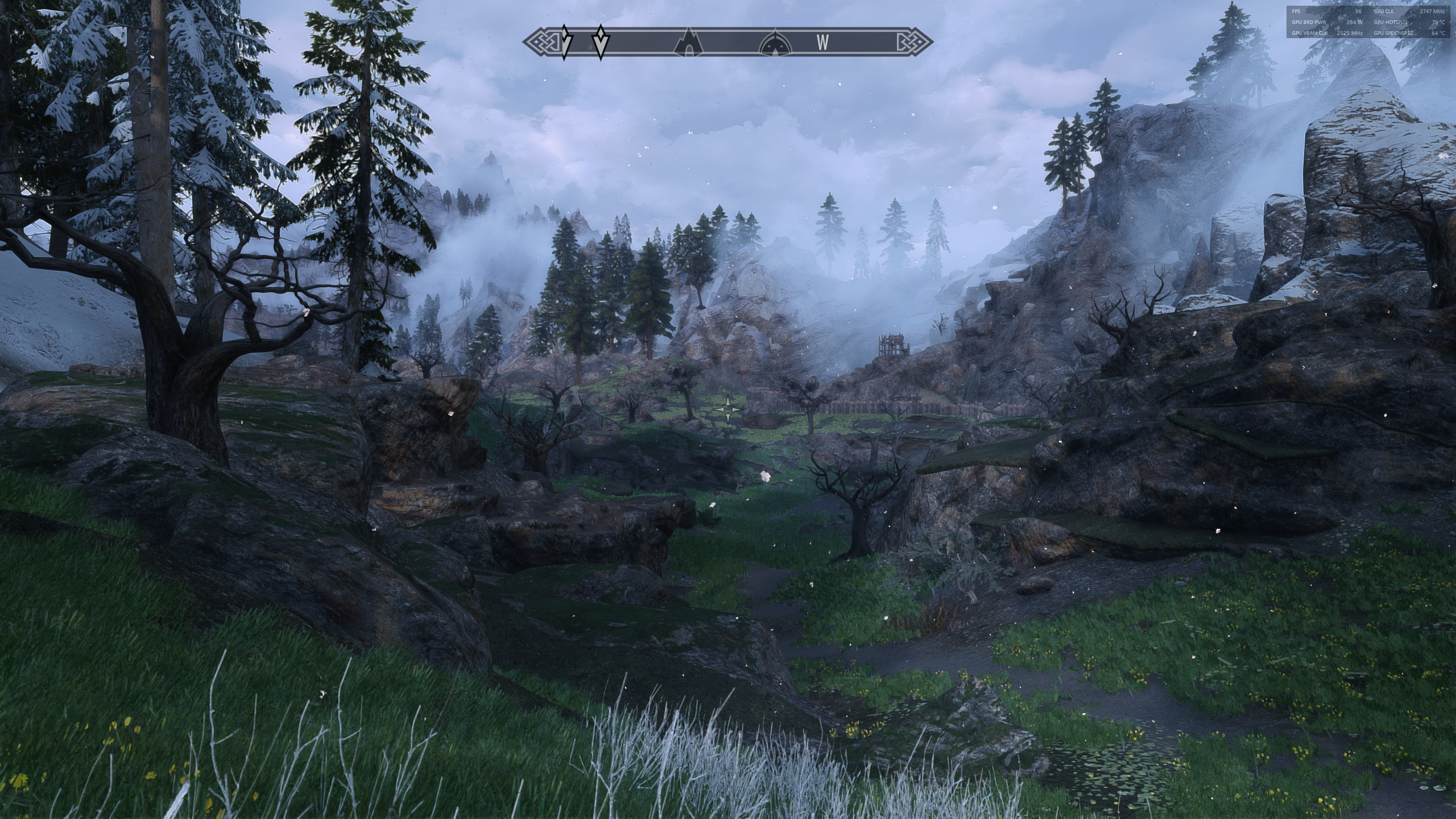 Hier ein bsp für den "grass lod color missmatch fix" durch angepasste Werte in der DynDoLODSSE.ini wie beschrieben. Ohne das ist das Gras im Hintergrund grün anstatt braun, (obwohl man Brown Tundra bei CL gewählt hat). Weitere Shots der Version 2.5f folgen iwann.
