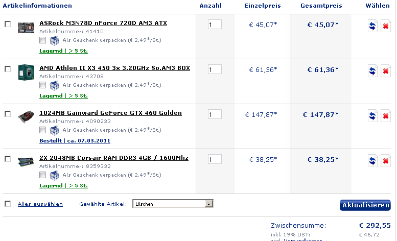 Genau, du bekommst ja noch einen Erlöß von deinen alten Sachen.. somit wirst du so im Schnitt 250 Euro ausgeben müssen (ca.100 Euro Verkauf!?) Intel wird ein Stück Teurer und würd ich dir bei deinem Budget nicht Empfehlen! Das Am3 Board was ich vorgeschlagen habe ist ja auch 6 Kern fähig, bei Intel müsstest du ein Sandy Bridge Board (6 und 8 Kern unterstützung) nehmen, da ist das Board und die CPU erheblich Teurer(aber auch Schneller)! Preis Leistung ist aber das AMD Besser!