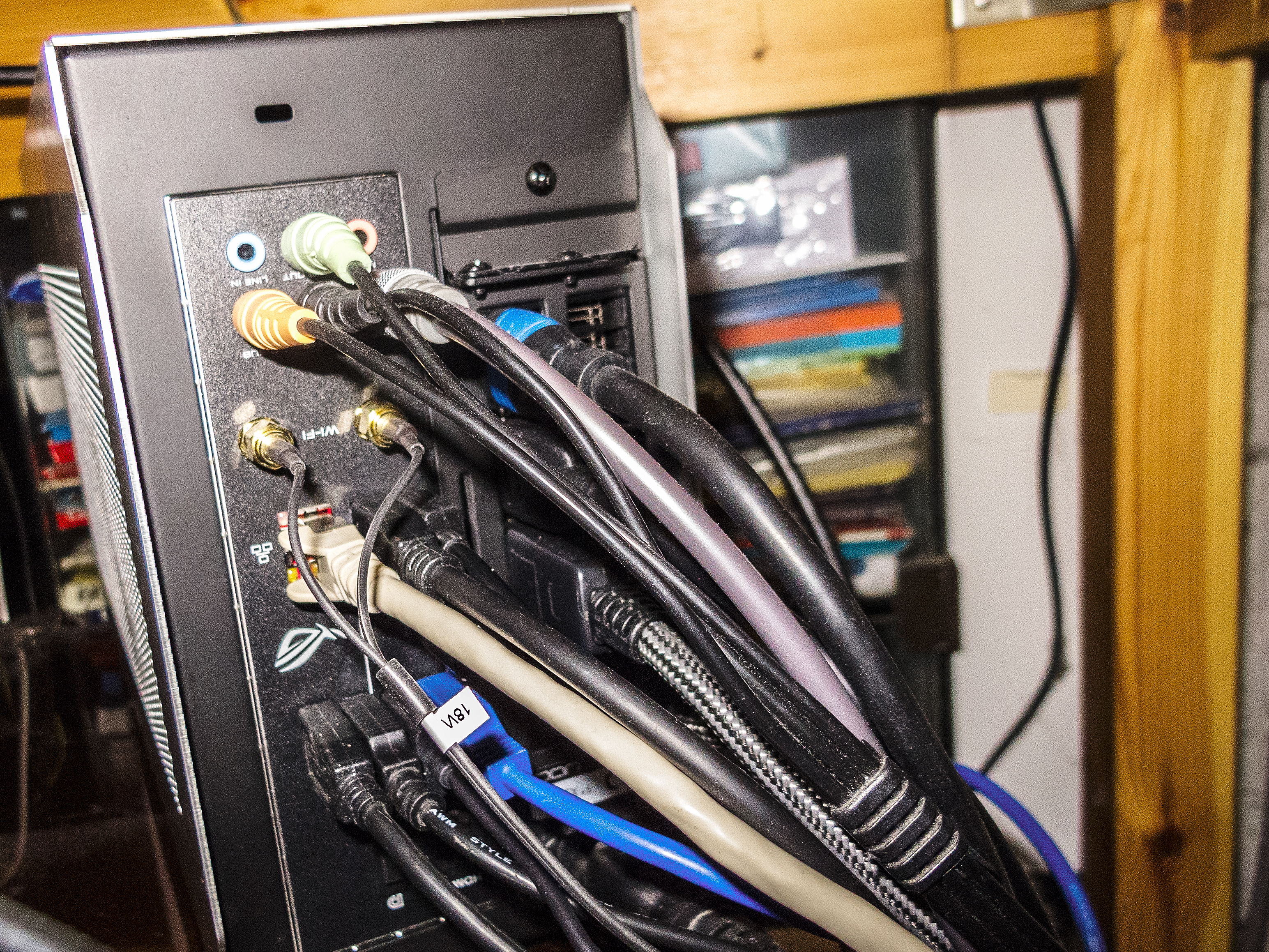 Meine Kiste unterm Tisch kann ich nur mit Mühe 90° drehen um hinten ranzukommen, viel zu viele Kabel!