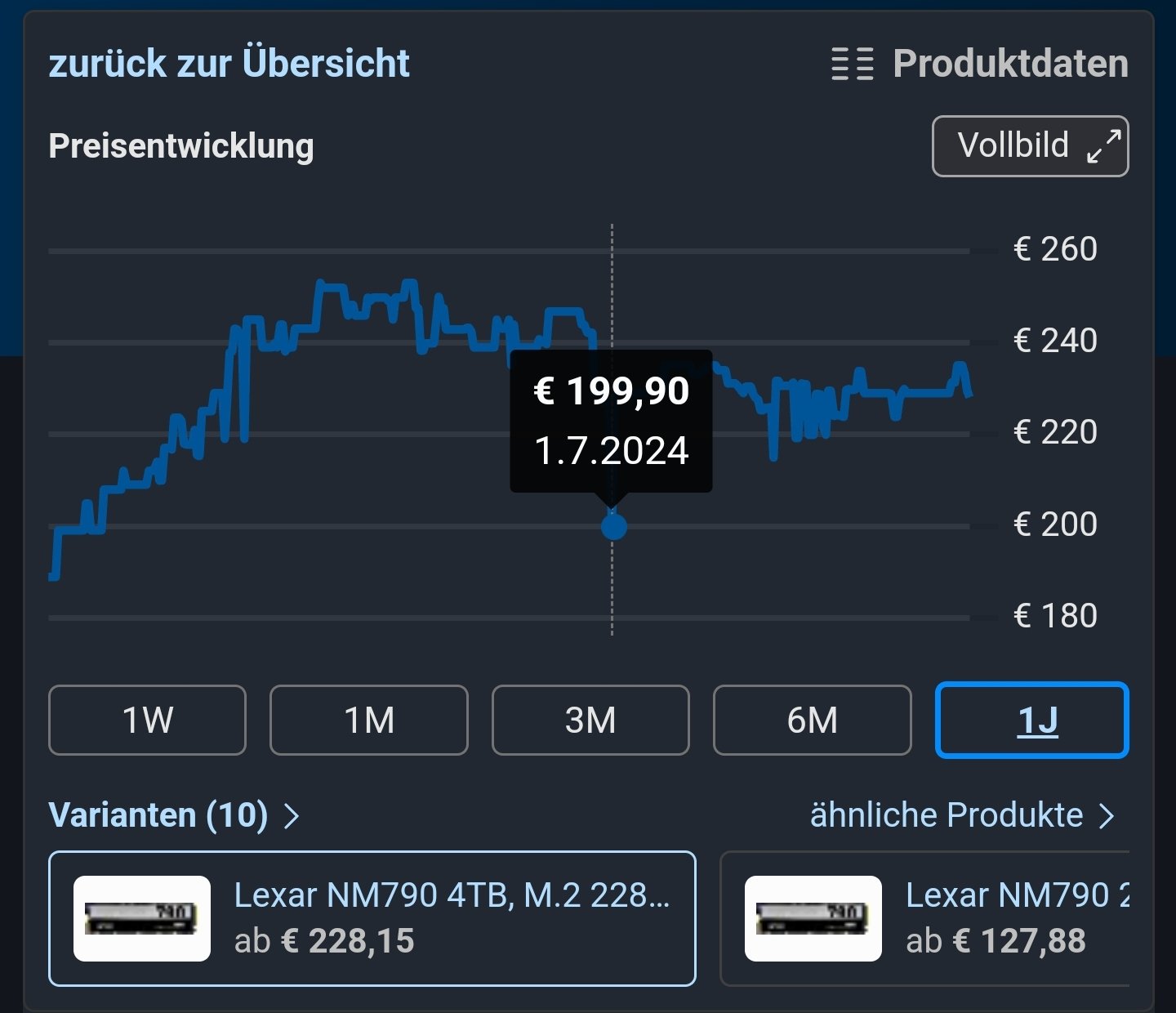 ich habe letztes Jahr 190€ oder so für die NM790 4tb gezahlt