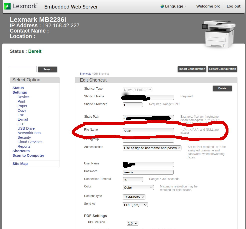 Ich habe ein Multifunktionsggerät, Lexmark MB2236i