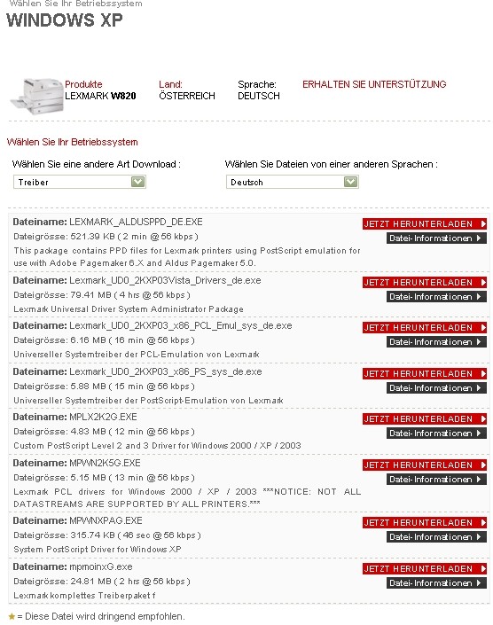 Was muss ich jetzt am PC installieren? Muss ich einen Treiber installieren (Auf der Lexmark Homepage gibt es so viele verschiedene - siehe Bild). Ich hätte schon versucht einen Treiber zu installieren. Aber dann ist der Drucker immer lokal installiert. Wie geht das, dass er dann über das Netzwerk druckt.