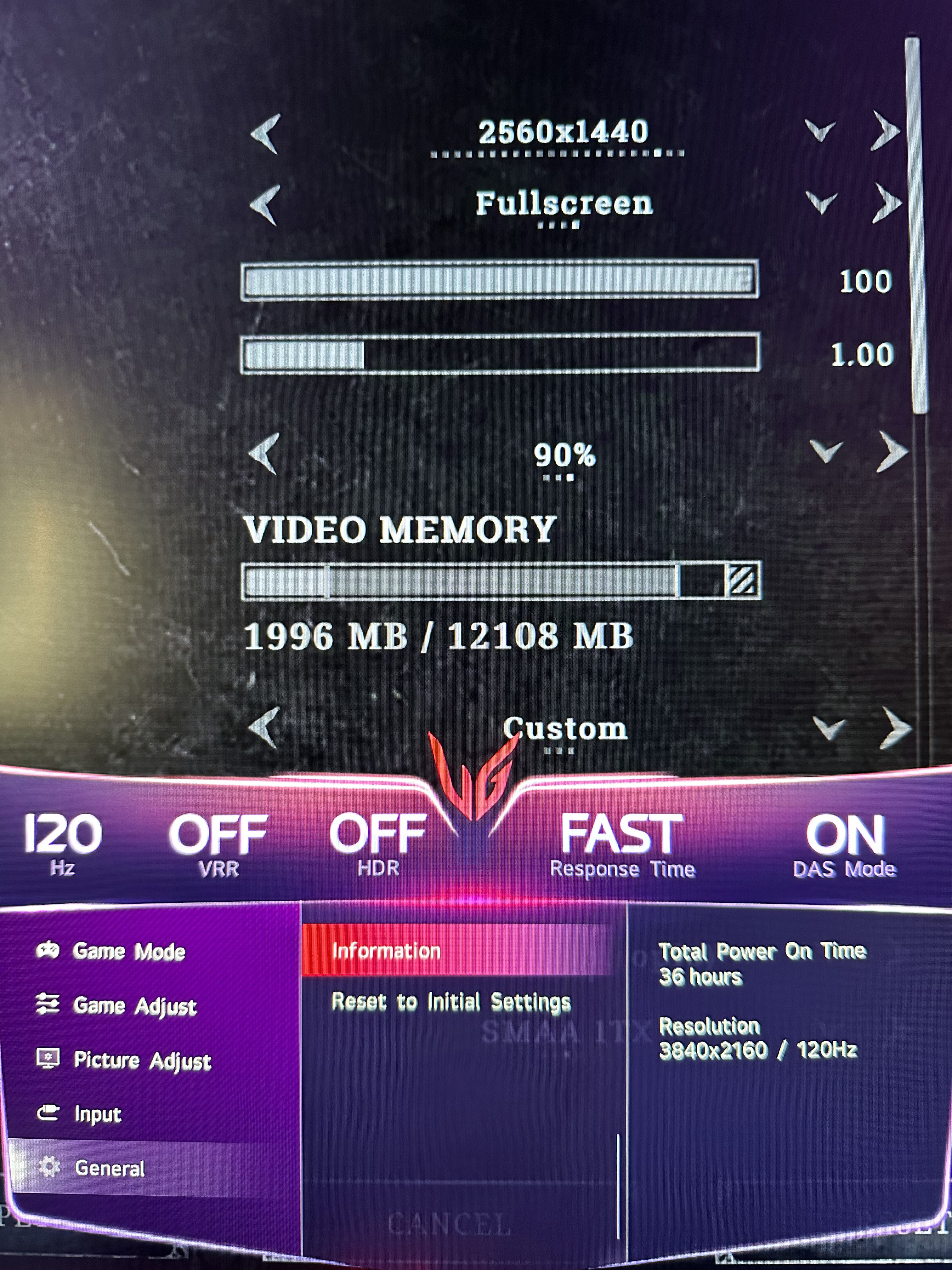 Jetzt passiert allerdings folgendes, wenn ich ein Spiel starte und dieses auf "Fullscreen" steht, dann startet der Monitor im 4K Mode, gibt eine Meldung aus, das dies nicht der bevorzuge Modus ist und bleibt dort. Also Monitor steht auf 3840x2160 @120Hz im Spiel steht 2560x1440 Fullscreen.
