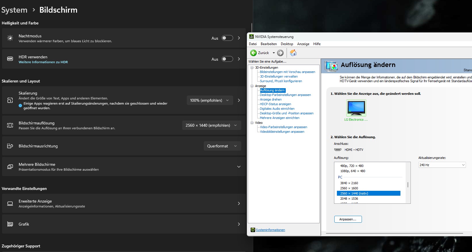 In Windows und dem NVIDIA Panel wird auch 2560x1440 als nativ angezeigt aber ich bekomme noch 2560x1600 und 3840x2160 angezeigt, alles gut soweit.
