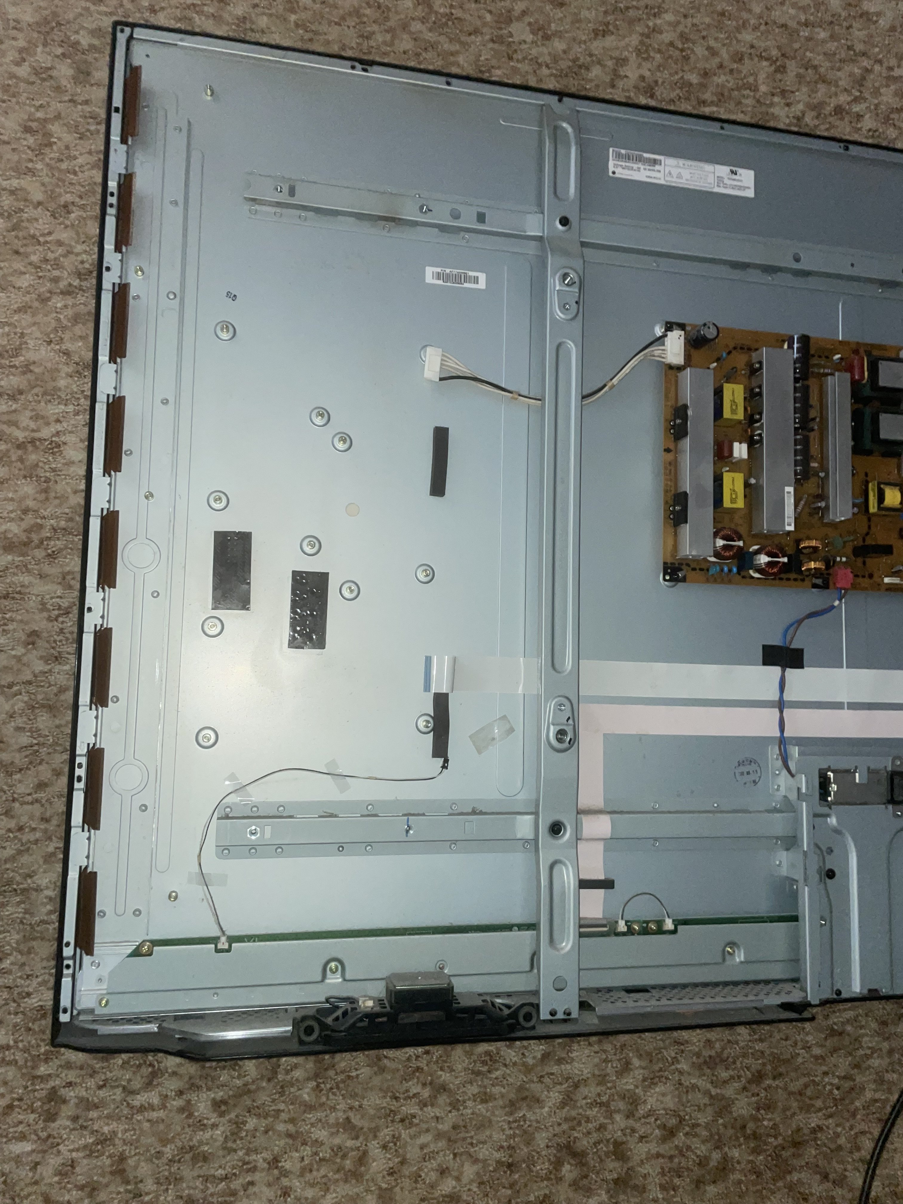 Wenn man eine Platine absteckt (scheint etwas mit dem Bildschirm zu tun), dann geht er ohne Bild an und bleibt an. Man hört auch ein Rauschen aus den Lautsprechern.
